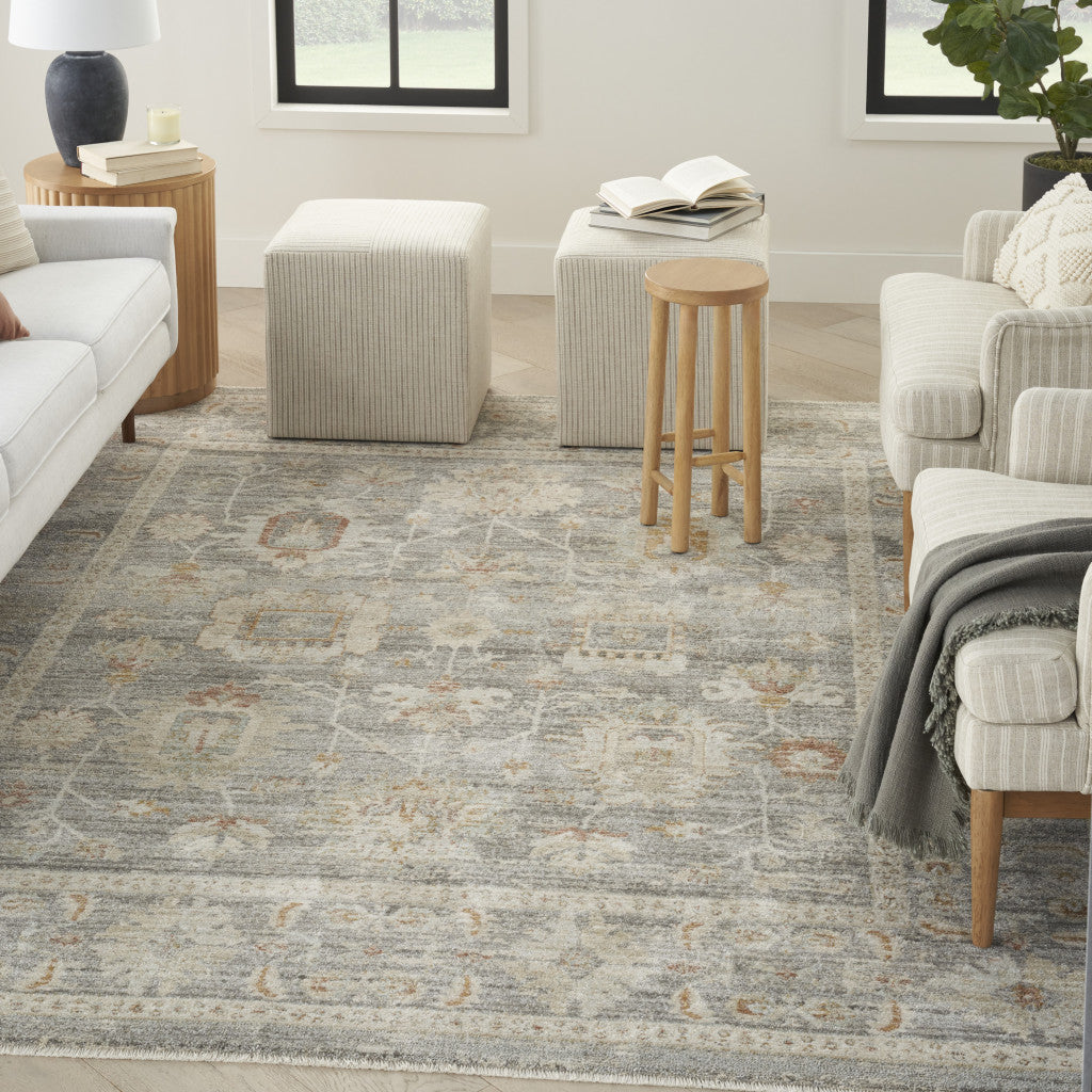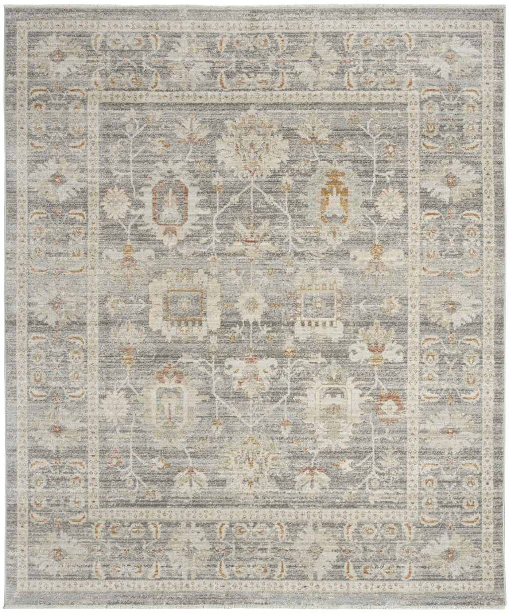 This 8-foot x 10-foot beige ivory and gray oriental power loom distressed area rug with fringe, is a great way to add warmth to a room. This rectangle shaped rug features a oriental design in beige ivory and gray to give it visual interest. A classic shape marries with good looking design for your space Tassel ends bring a timeless and fashionable look to your interior. Area Rugs help to give warmth and sense of home to your space. .39-inch H x 94.00-inch W x 121.00-inch D