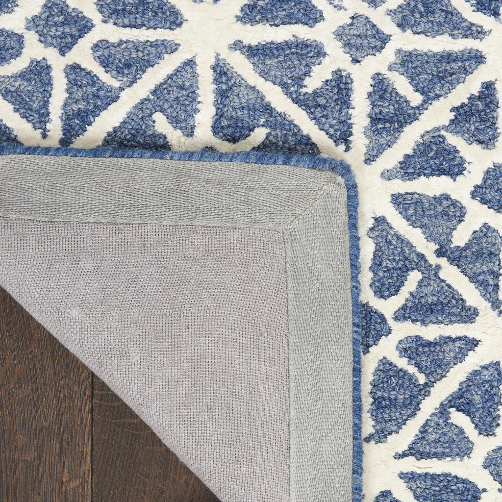 8' x 10' Blue and Off White Geometric Hand Tufted Area Rug