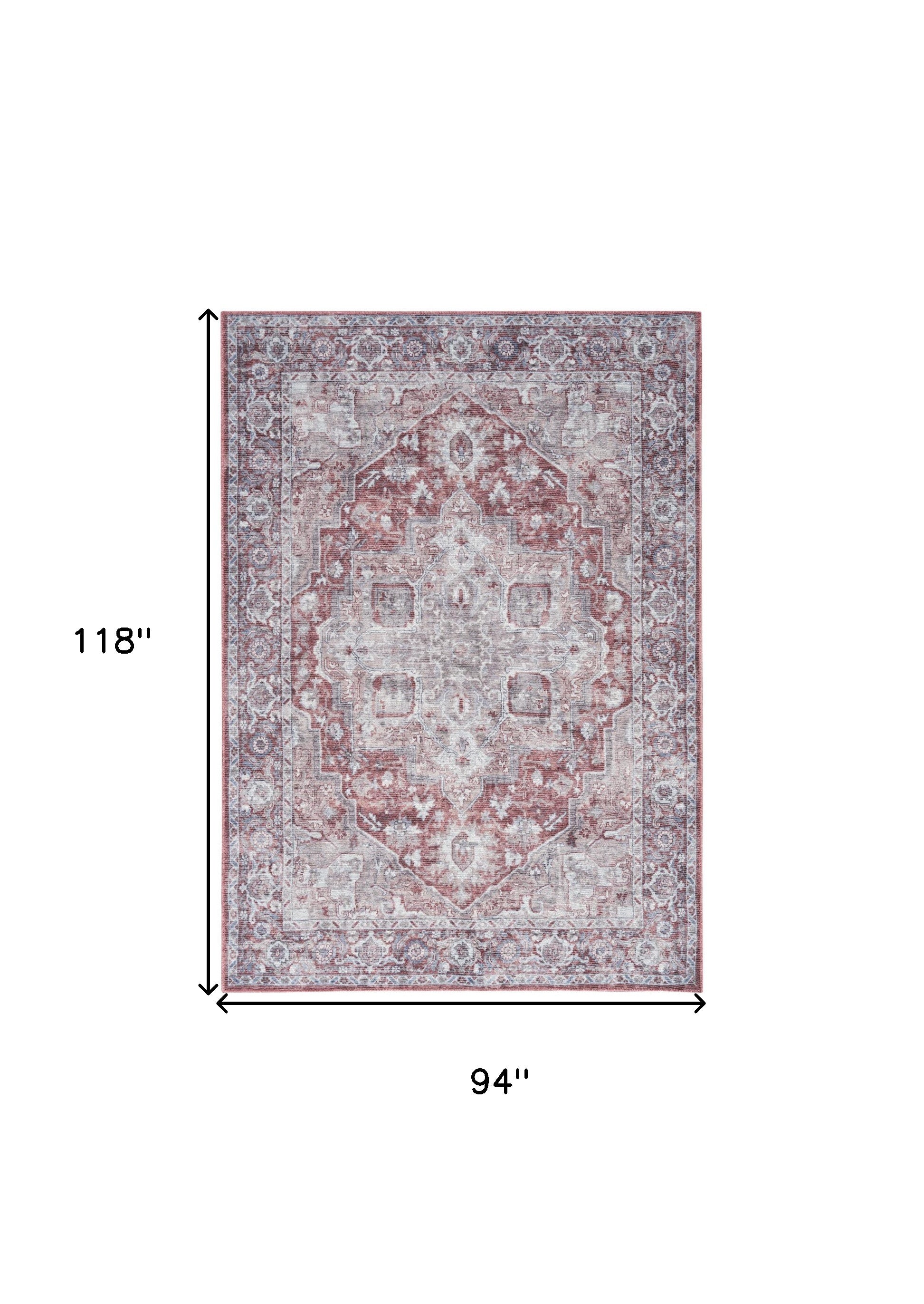 8' X 10' Blue And Pink Floral Power Loom Distressed Washable Area Rug