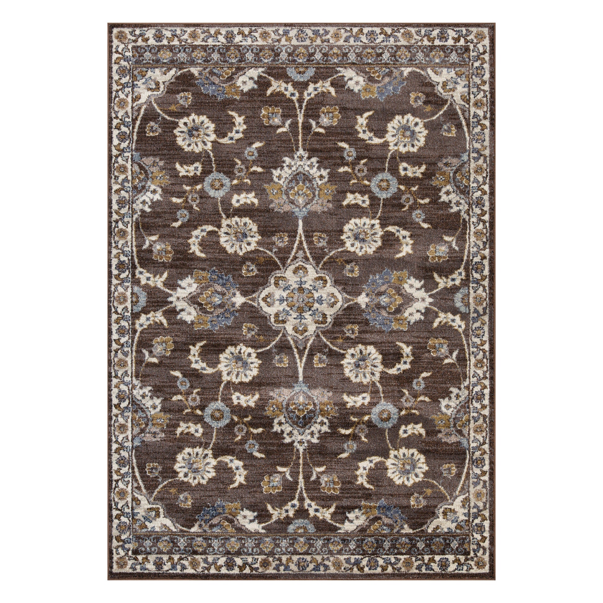 This 8-foot x 10-foot brown floral power loom area rug with fringe, is a great way to add warmth to a room. This rectangle shaped rug features a floral design in brown to give it visual interest. A classic shape marries with good looking design for your space Ideal for spaces with kids and pets, this rug is stain resistant to help repel stains and spilled liquids. Place this area rug against a hardwood or tile floor and it will enliven your living space with style and sophistication. 0.4-inch H x 94-inch W x 122-inch D