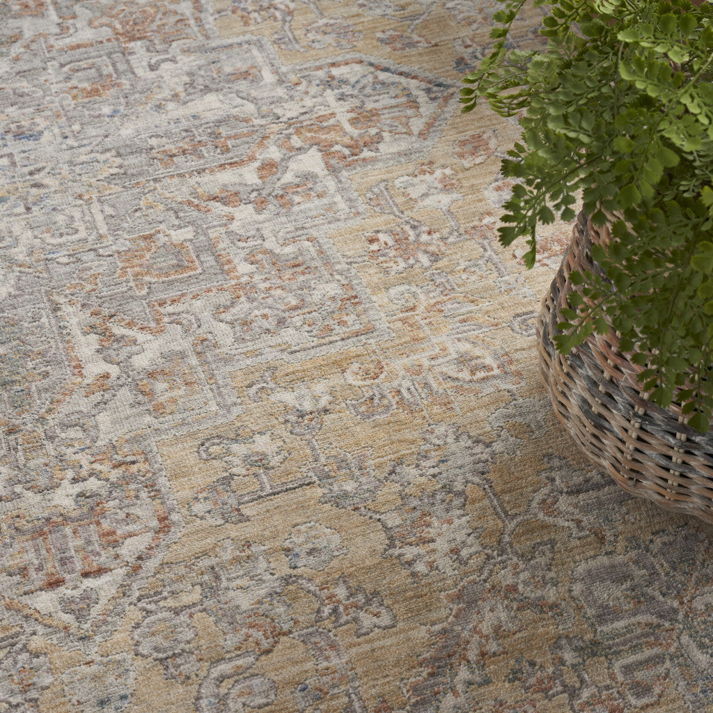 Add great coloration and comfortable texture to your space with this 8-foot x 10-foot gray and gold oriental power loom distressed area rug with fringe. This rectangle shaped rug features a oriental design in gray and gold to give it visual interest. A classic shape marries with good looking design for your space Tassel ends bring a timeless and fashionable look to your interior. Area Rugs help to give warmth and sense of home to your space. .25-inch H x 94.00-inch W x 120.00-inch D