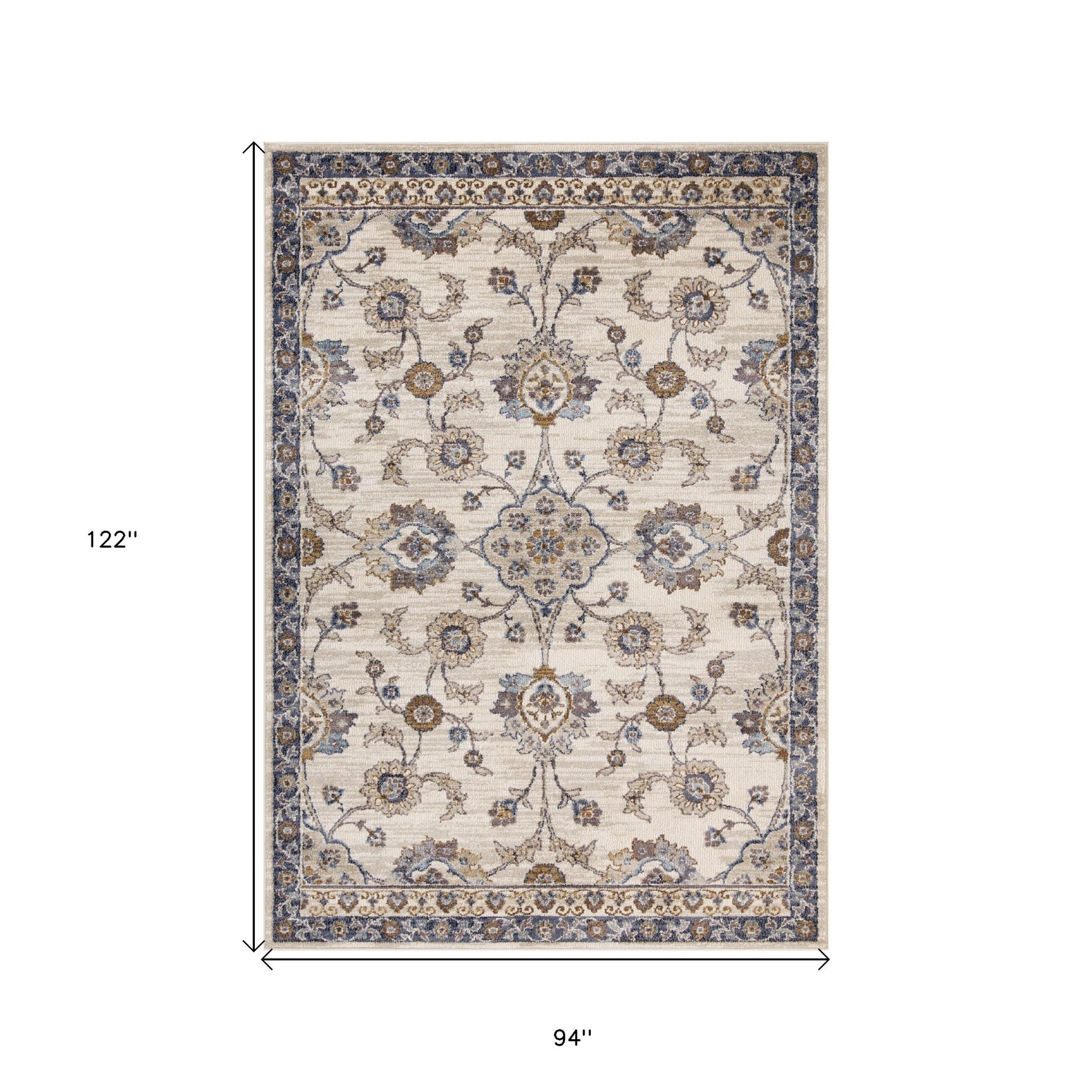 8' x 10' Gray and Ivory Floral Power Loom Area Rug