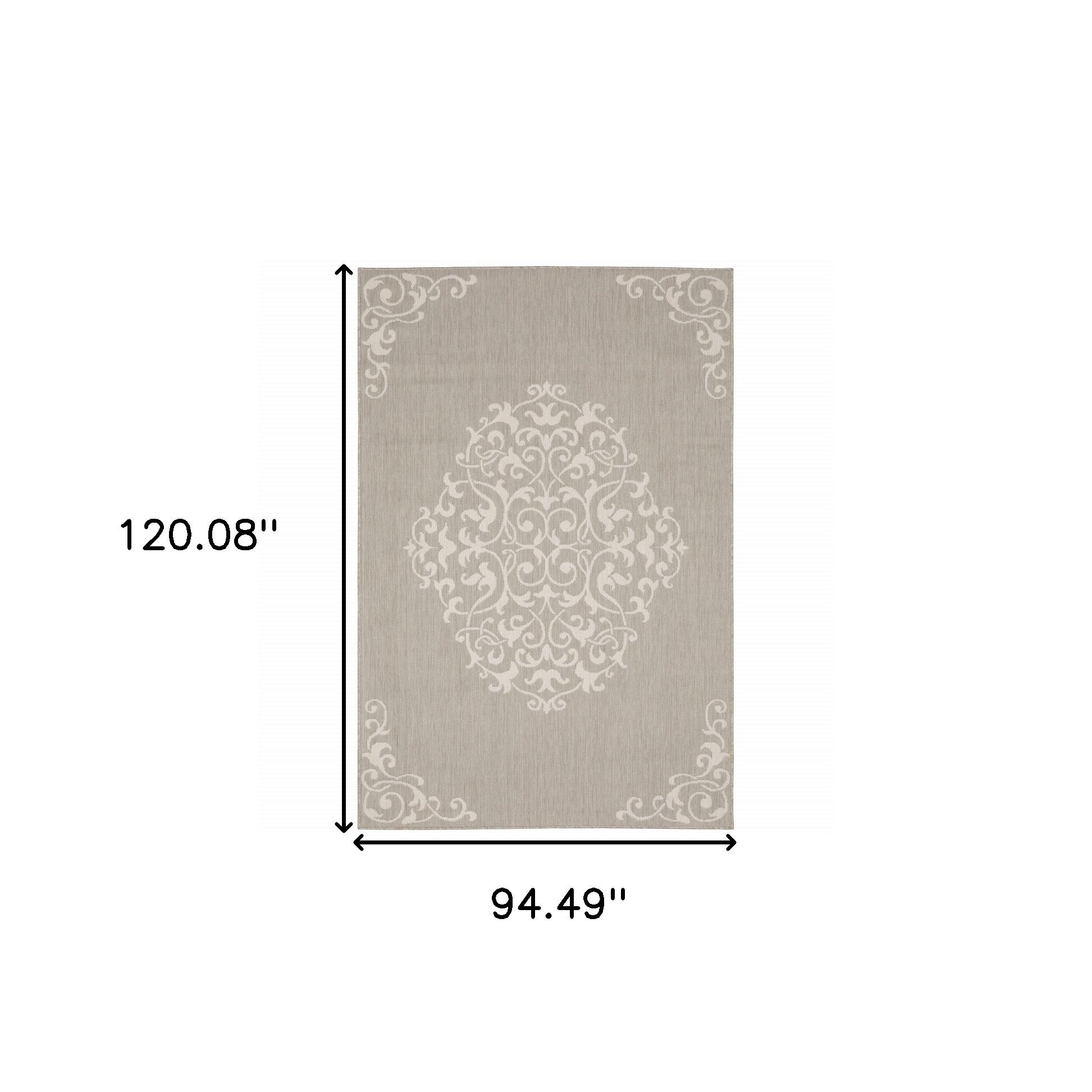 8' x 10' Gray and Ivory Oriental Stain Resistant Indoor Outdoor Area Rug