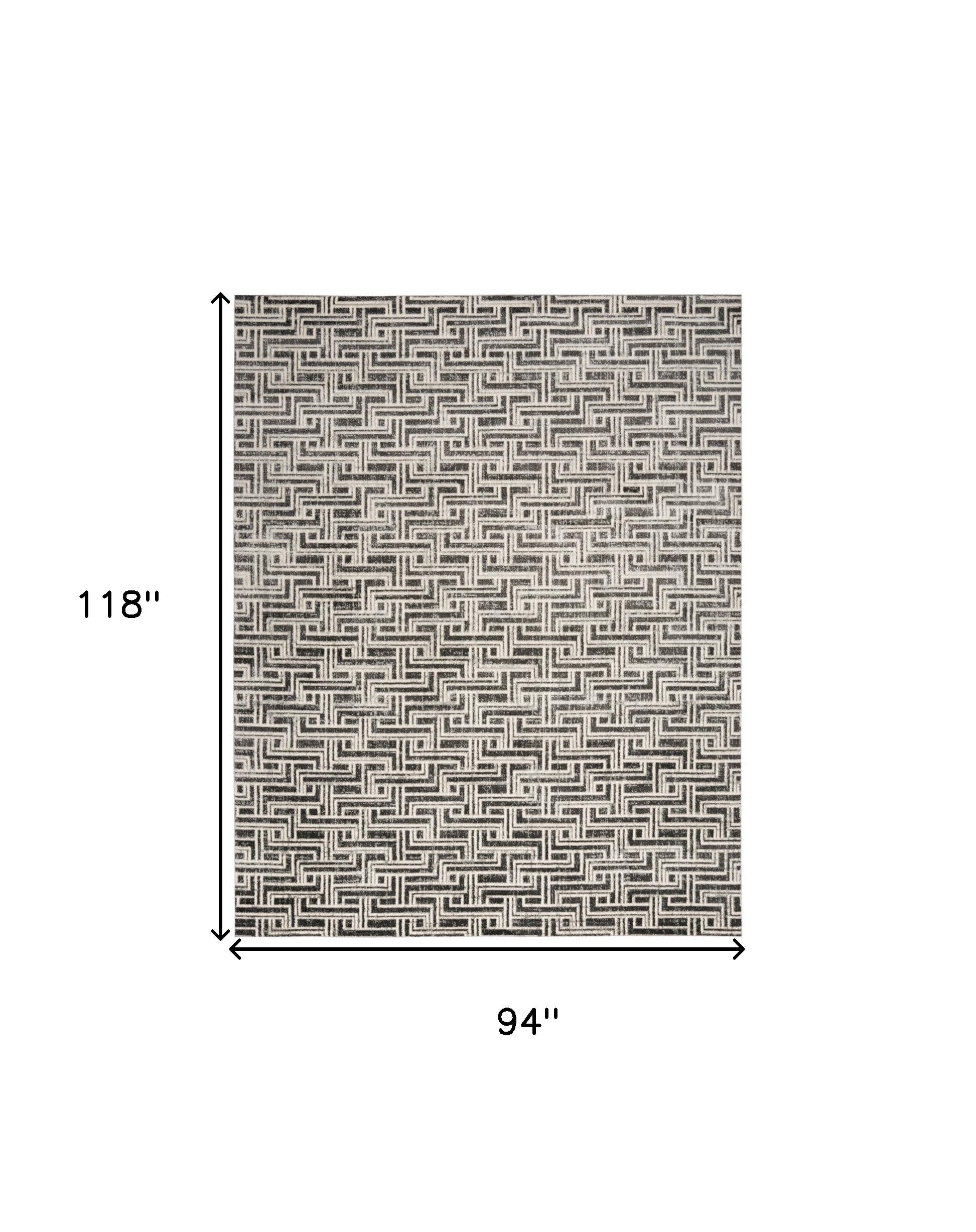 Set an inviting tone in your space with this 8-foot x 10-foot gray geometric distressed area rug. This rectangle shaped rug features a geometric design in gray to give it visual interest. A classic shape marries with good looking design for your space the coloring of this rug adds a delightfully neutral tone to your home and will easily match with most any decor. Area rugs help to give warmth and sense of home to your space. 94-inch H x 118-inch W x 0.35-inch D