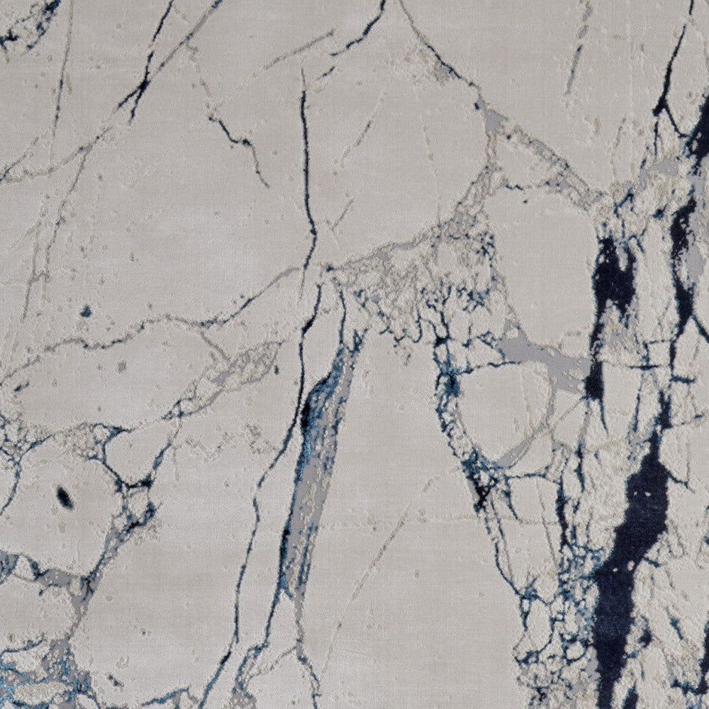 8' x 10' Ivory and Blue Marble Power Loom Distressed Area Rug