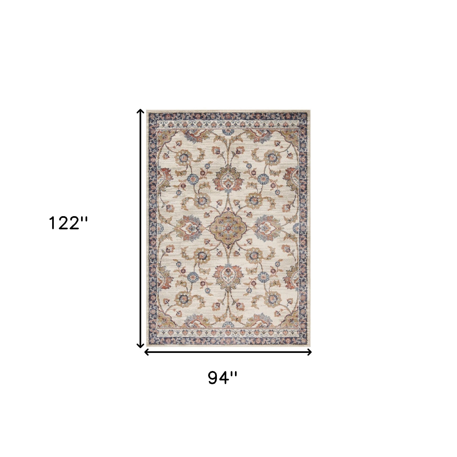 Add some artistry to your room with this 8-foot x 10-foot ivory floral power loom area rug. This rectangle shaped rug features a floral design in ivory to give it visual interest. A classic shape marries with good looking design for your space The coloring of this rug adds a delightfully neutral tone to your home and will easily match with most any decor. Ideal for spaces with kids and pets, this rug is stain resistant to help repel stains and spilled liquids. Area Rugs help to give warmth and sense of home to your space. 0.4-inch H x 94-inch W x 122-inch D