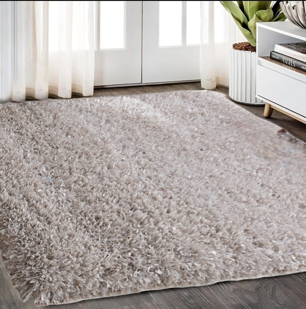 8' x 11' Beige Shag Hand Tufted Area Rug
