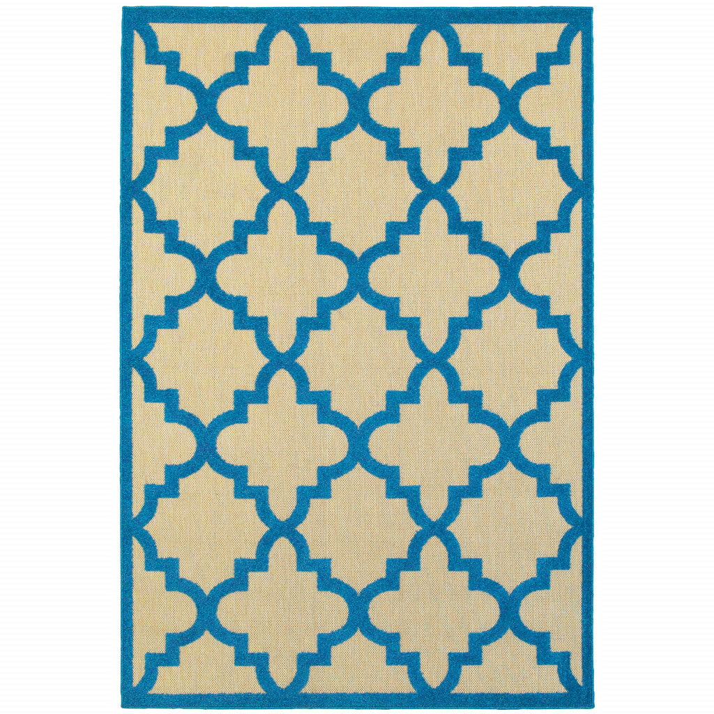8' x 11' Blue and Beige Geometric Stain Resistant Indoor Outdoor Area Rug