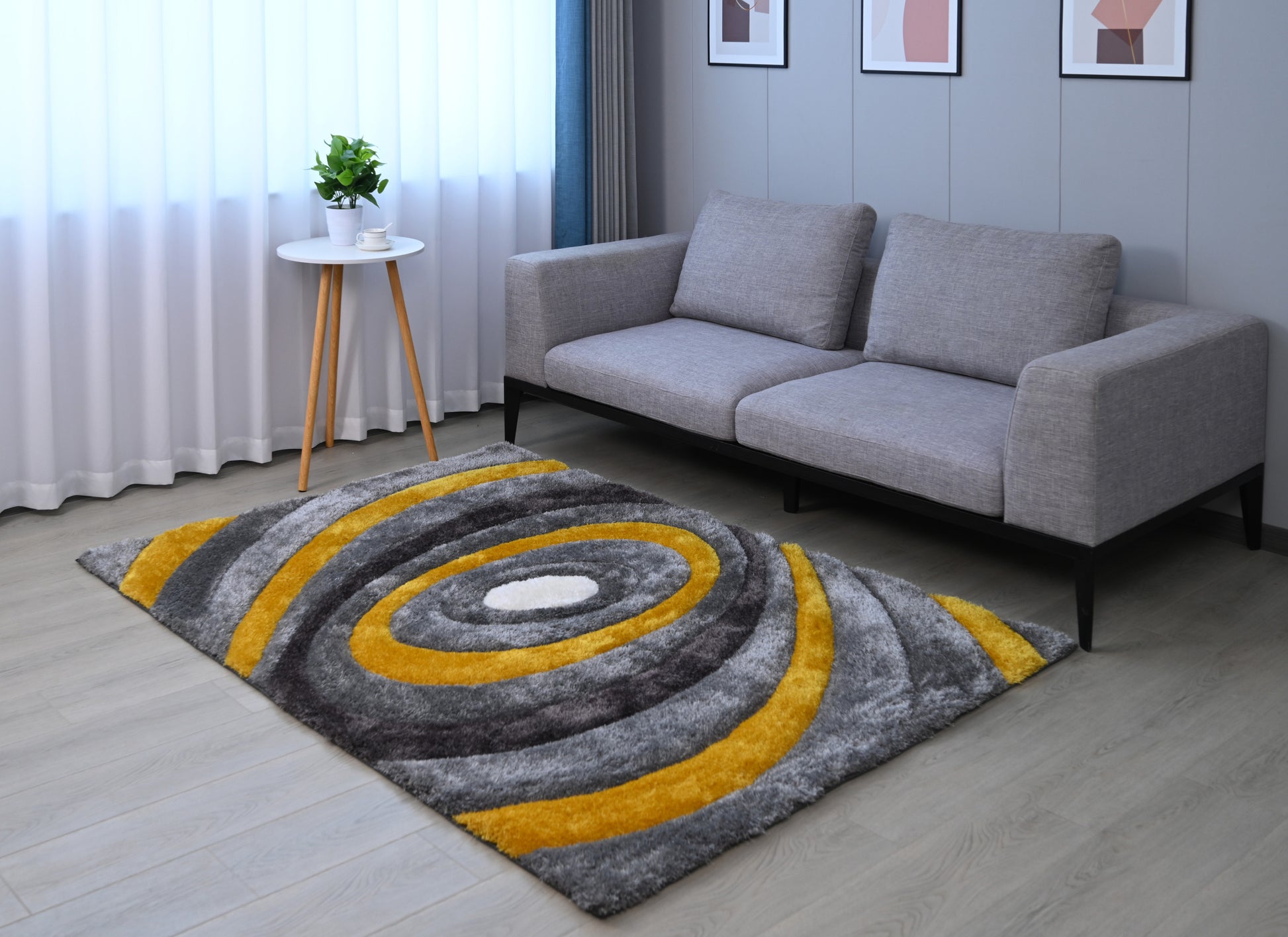 This 8-foot x 11-foot gray and yellow shag hand tufted area rug, is a great way to add warmth to a room. The retro shag construction of this luxurious rug will provide a soft and comfortable barrier to color tile and hardwood floors. Area rugs help to give warmth and sense of home to your space. 96-inch H x 132-inch W x 1.5-inch D