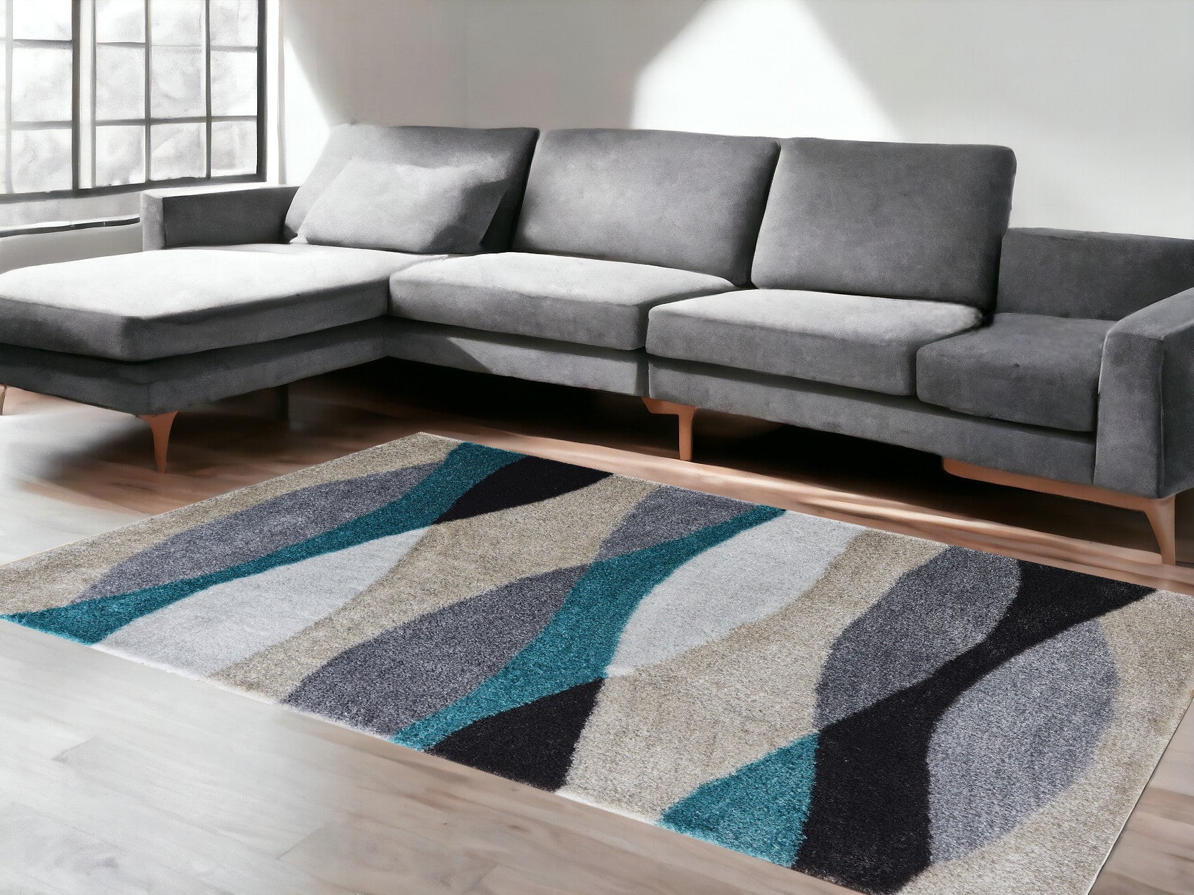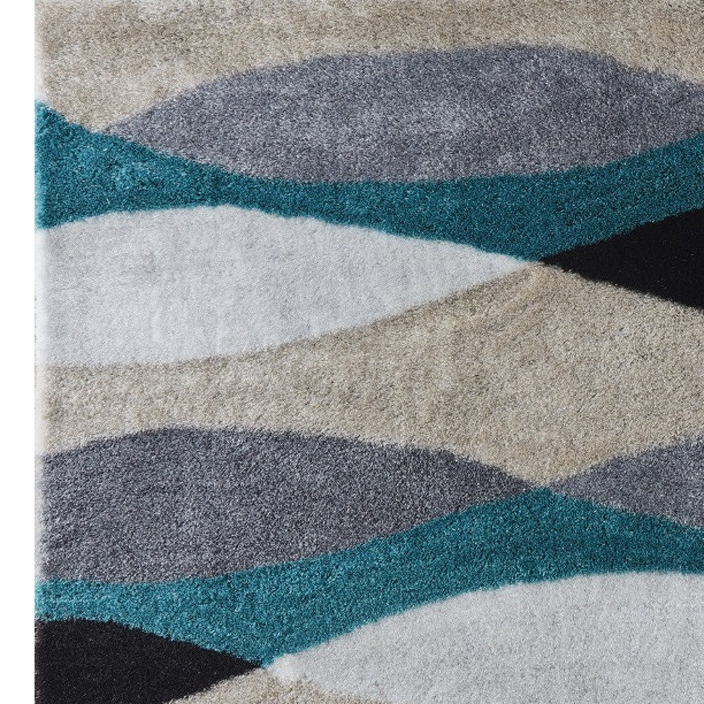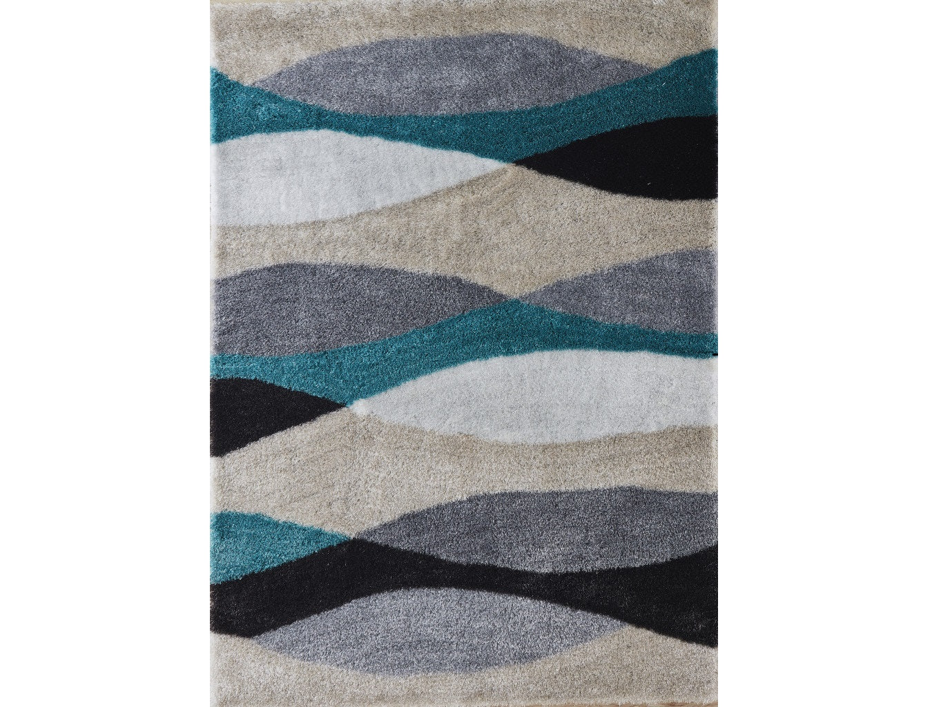 Add some artistry to your room with this 8-foot x 11-foot gray black and blue shag hand tufted area rug. The retro shag construction of this luxurious rug will provide a soft and comfortable barrier to color tile and hardwood floors. Area rugs help to give warmth and sense of home to your space. 96-inch H x 132-inch W x 1-inch D