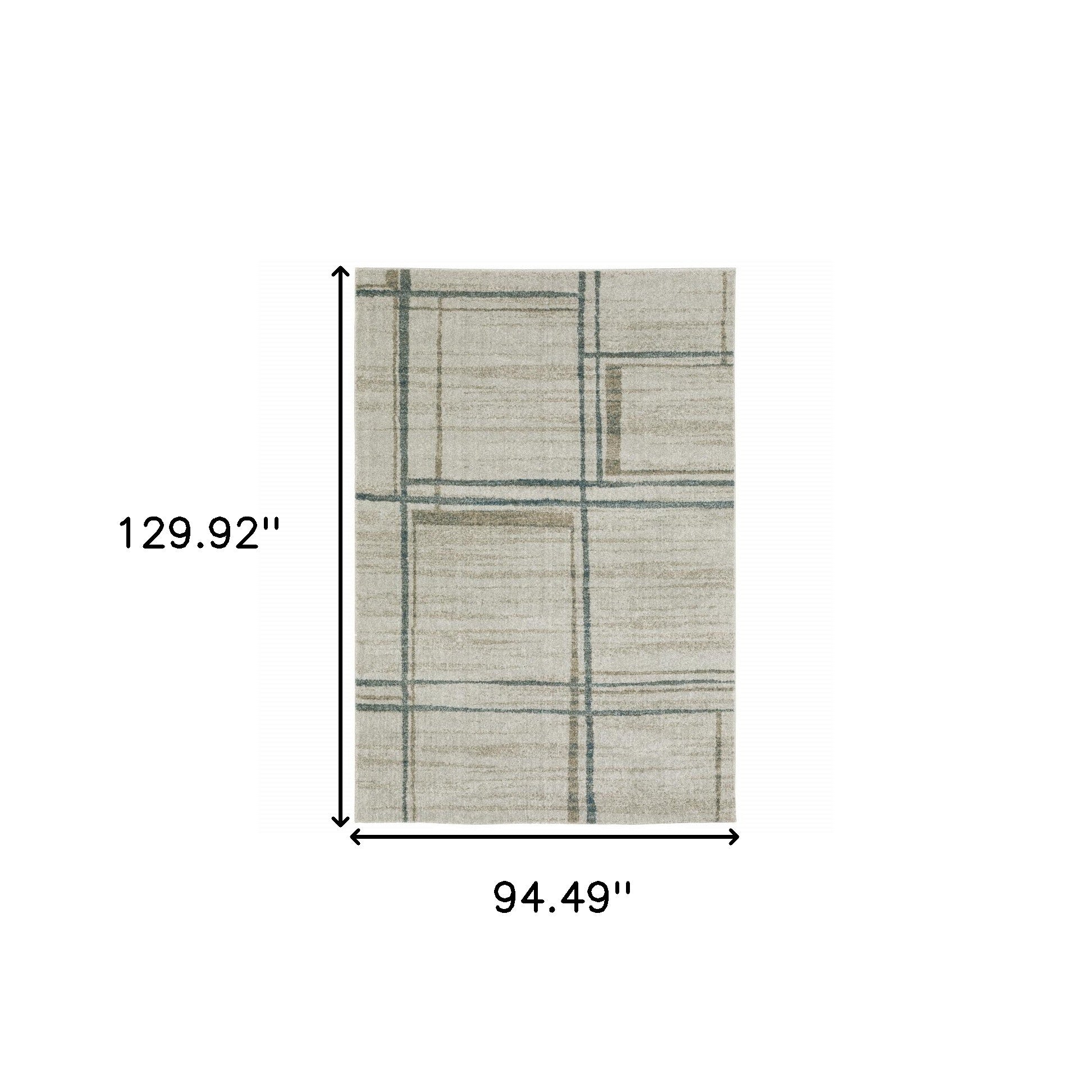 8' X 11' Grey Teal Beige And Tan Geometric Power Loom Area Rug