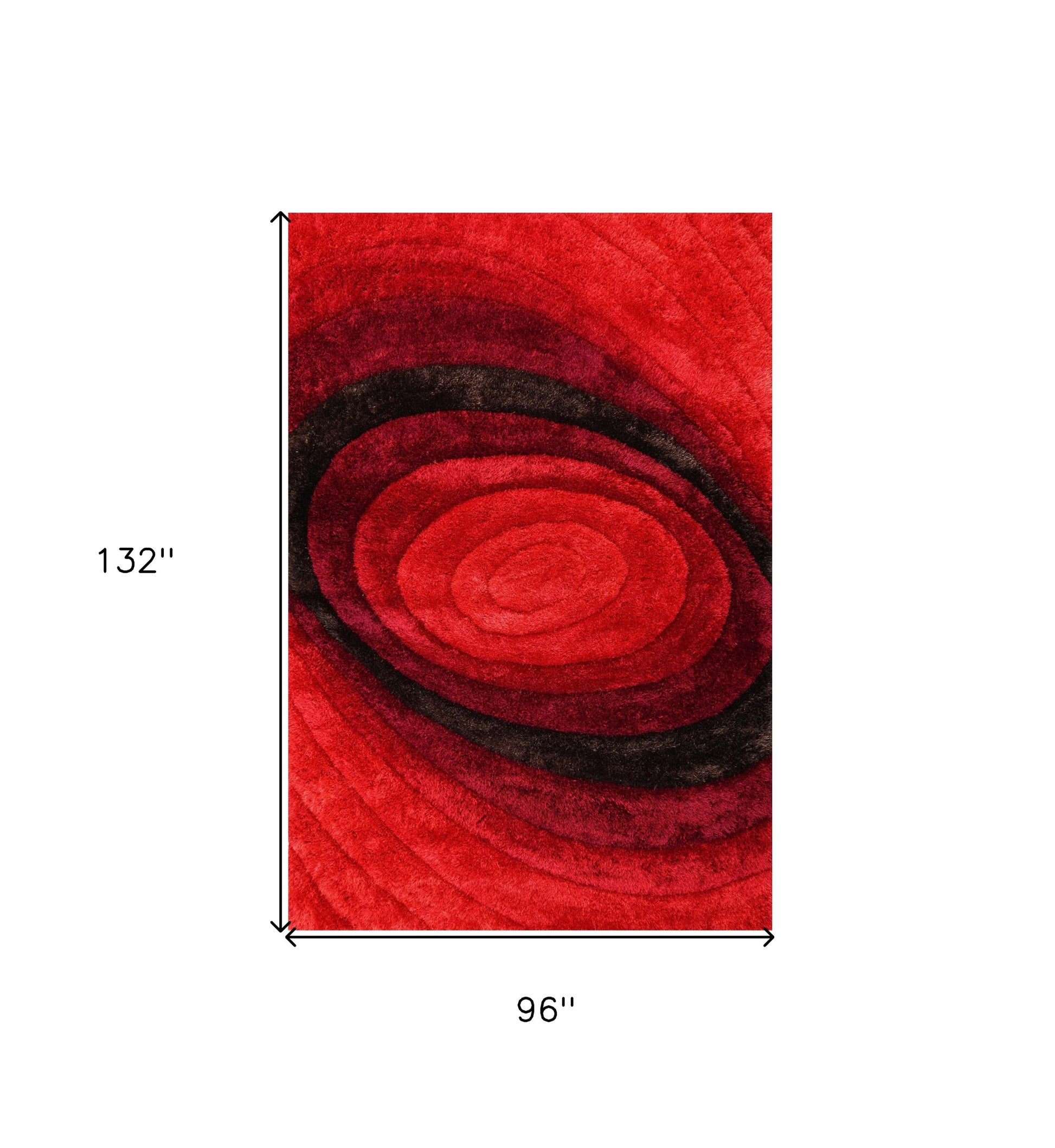 This 8-foot x 11-foot red and black shag hand tufted area rug, is a great way to add warmth to a room. The retro shag construction of this luxurious rug will provide a soft and comfortable barrier to color tile and hardwood floors. Place this area rug against a hardwood or tile floor and it will enliven your living space with style and sophistication. 96-inch H x 132-inch W x 1.5-inch D