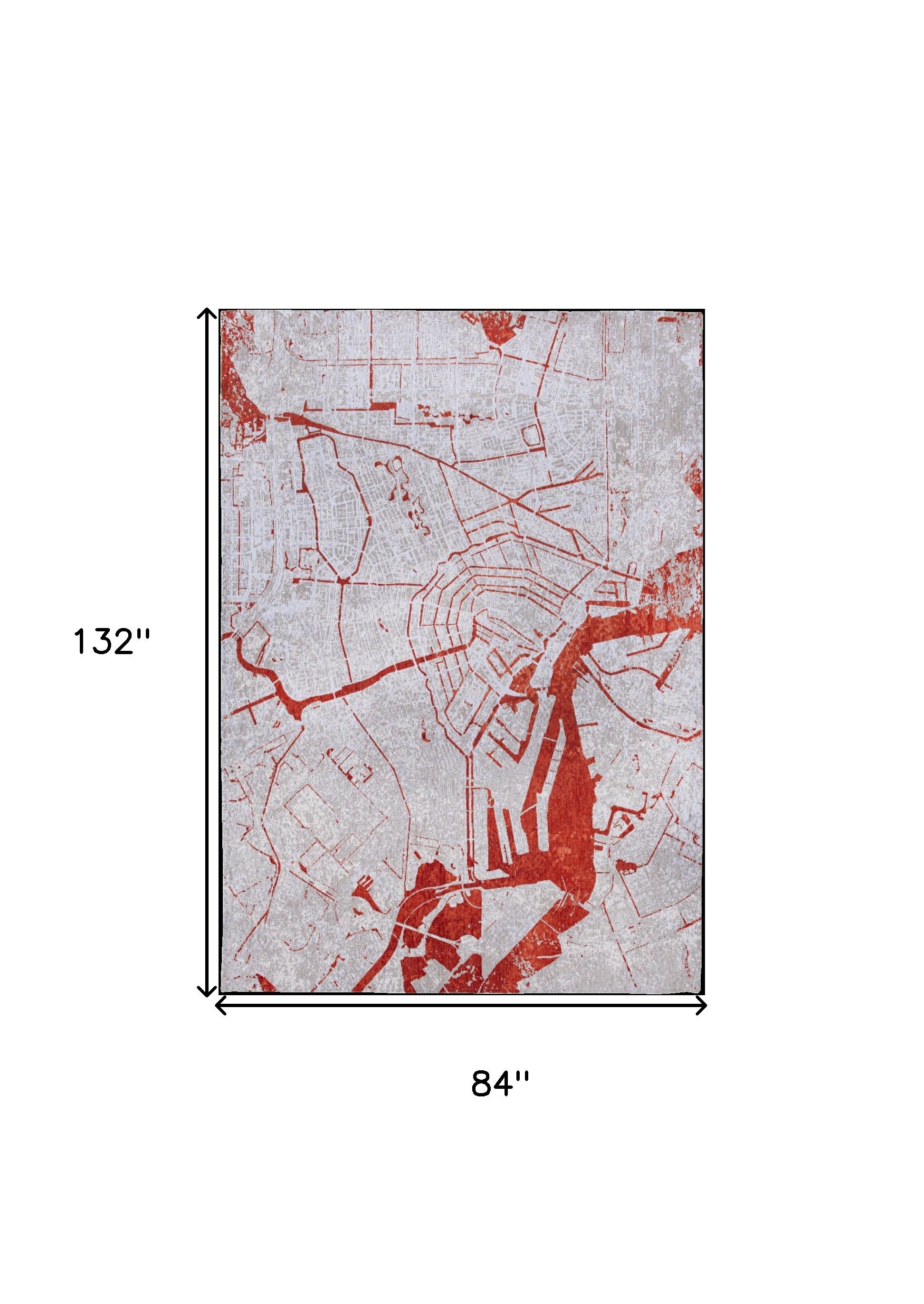 8' x 11' Red and White Abstract Non Skid Area Rug