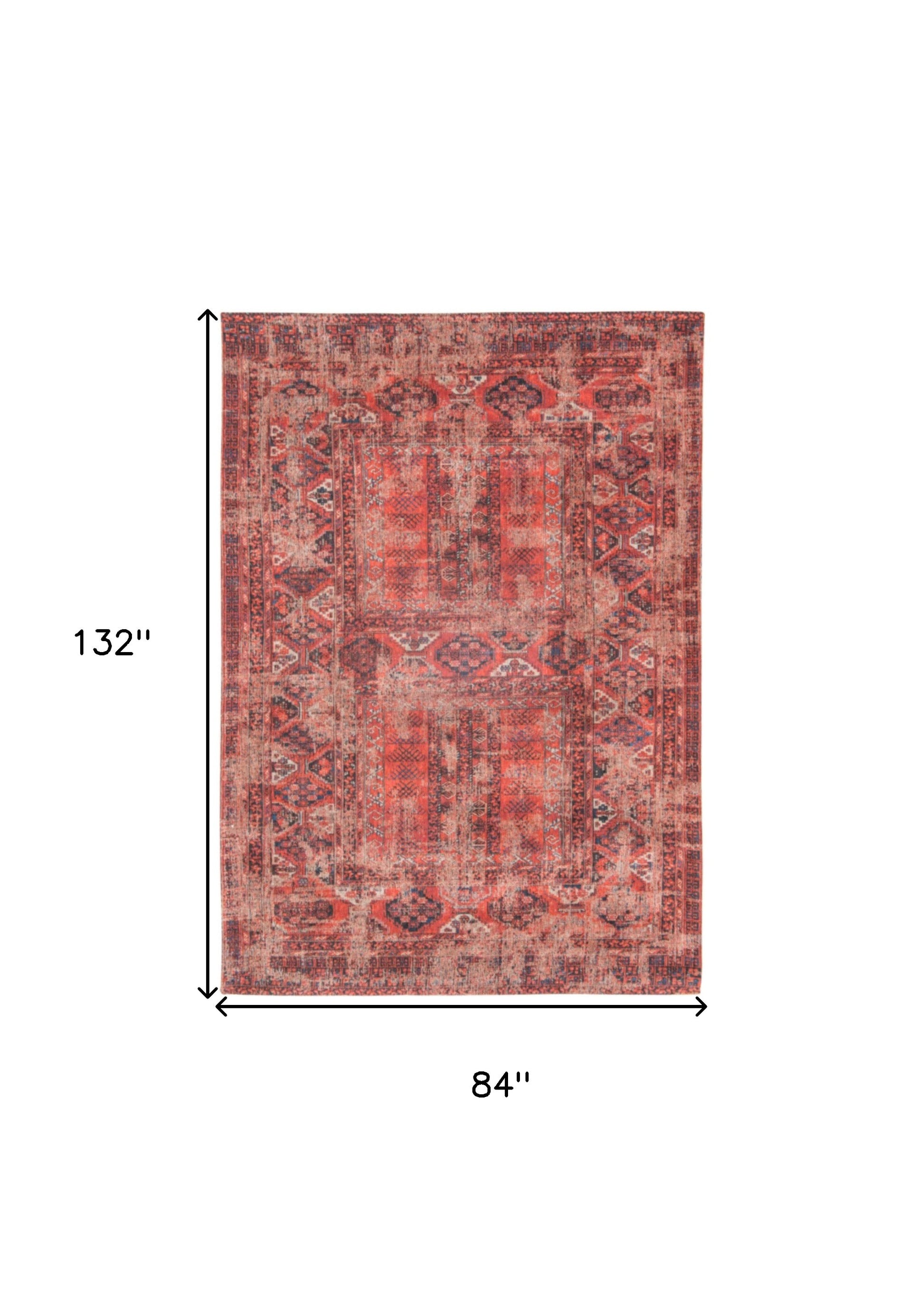 Set an inviting tone in your space with this 8-foot x 11-foot red oriental non skid area rug. This rectangle shaped rug features a oriental design in red to give it visual interest. A classic shape marries with good looking design for your space place this area rug against a hardwood or tile floor and it will enliven your living space with style and sophistication. 84-inch H x 132-inch W x 0.12-inch D