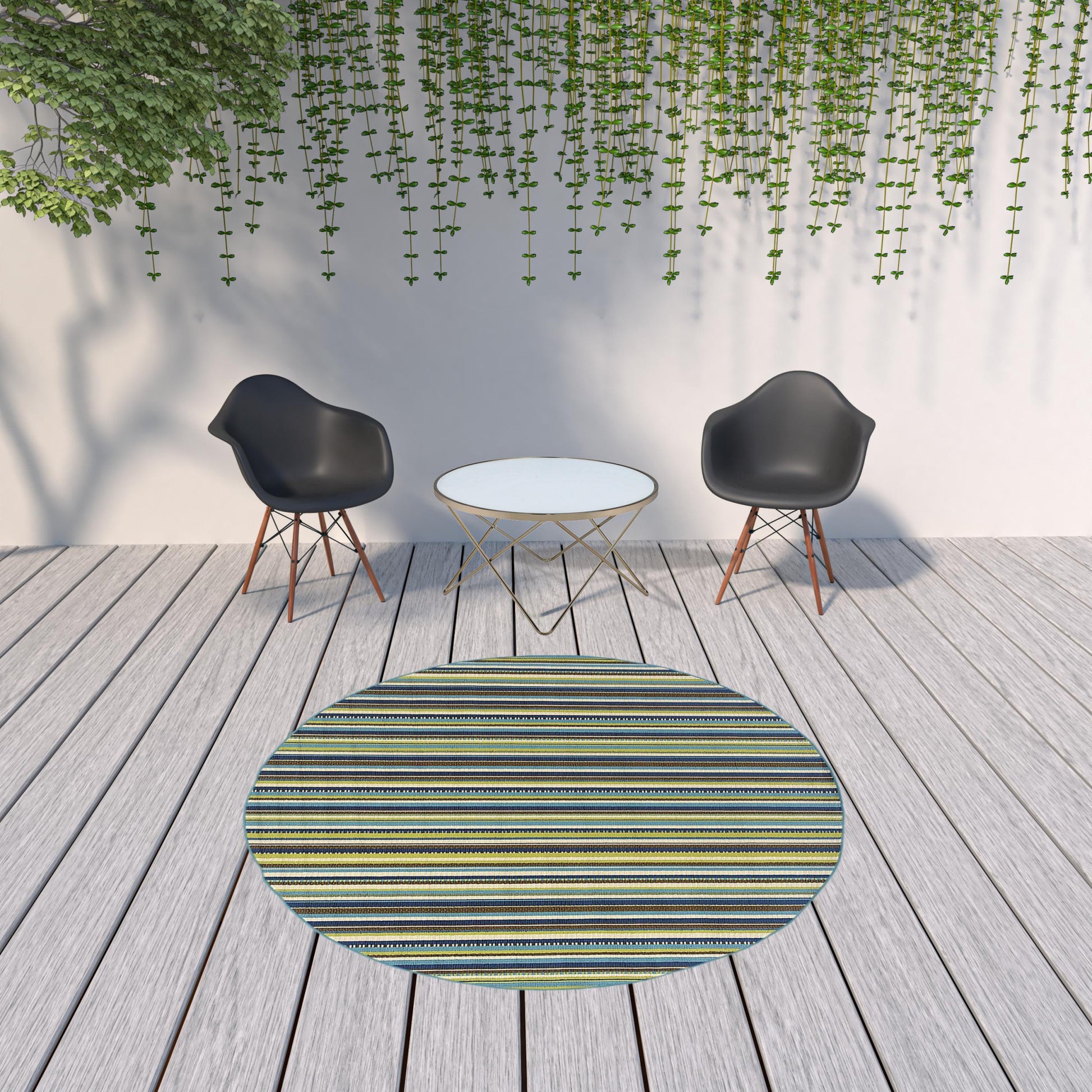 8' x 8' Blue and Green Round Striped Stain Resistant Indoor Outdoor Area Rug
