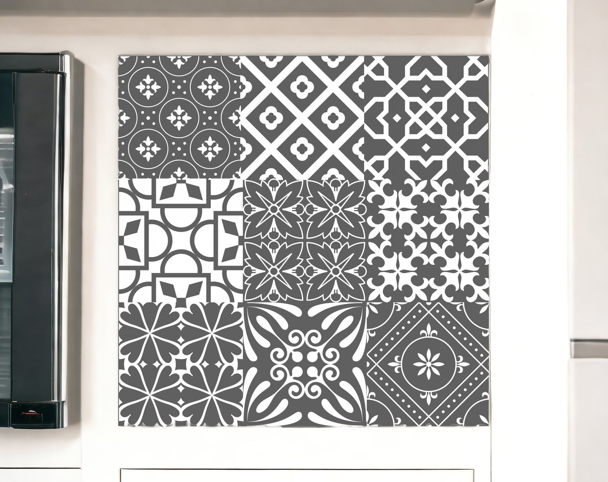 The possibilities are endless with these 8" x 8" Gray and White Mosaic Peel and Stick Removable Tile stickers. These fabulous peel and stick tiles will add lots of color, sophisticated flair, and fun design to your kitchen backsplash, fireplace mantel, stair treads, half wall, bathroom or nook. These 8" square tile stickers in multiple bright fun colors and designs are an easy, no mess solution to complete a personalized and colorful room makeover. Easy to apply on any clean dry flat surface, and easy to remove. Multi use and multi-room appeal make this design option is perfect for renters, landlords, college students and homeowners alike. Peel and stick tile decals make it easy to turn your space into a home. Removable without damage to surfaces. One kit contains 24 stickers. Multiple