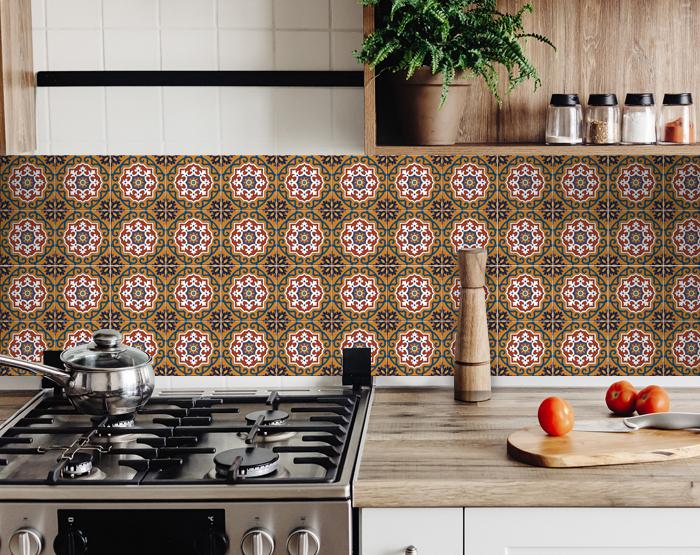 The possibilities are endless with these 8" x 8" Old World Ole Peel and Stick Removable Tile stickers. These fabulous peel and stick tiles will add lots of color, sophisticated flair, and fun design to your kitchen backsplash, fireplace mantel, stair treads, half wall, bathroom or nook. These 8" square tile stickers in multiple bright fun colors and designs are an easy, no mess solution to complete a personalized and colorful room makeover. Easy to apply on any clean dry flat surface, and easy to remove. Multi use and multi-room appeal make this design option is perfect for renters, landlords, college students and homeowners alike. Peel and stick tile decals make it easy to turn your space into a home. Removable without damage to surfaces. One kit contains 24 stickers. Kit includes a single style tile design.