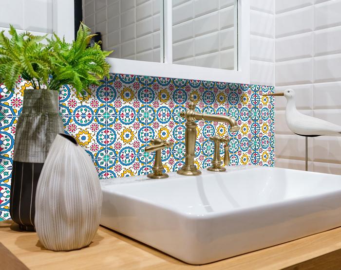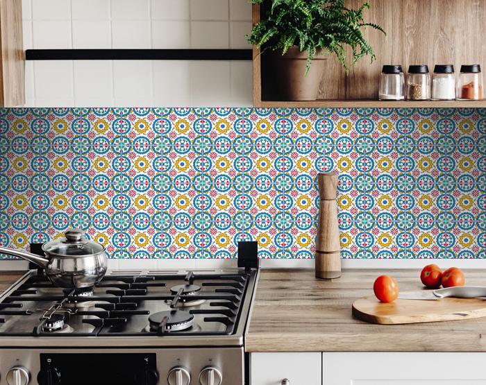 The possibilities are endless with these 8" x 8" Raffia Gia Peel and Stick Removable Tile stickers. These fabulous peel and stick tiles will add lots of color, sophisticated flair, and fun design to your kitchen backsplash, fireplace mantel, stair treads, half wall, bathroom or nook. These 8" square tile stickers in multiple bright fun colors and designs are an easy, no mess solution to complete a personalized and colorful room makeover. Easy to apply on any clean dry flat surface, and easy to remove. Multi use and multi-room appeal make this design option is perfect for renters, landlords, college students and homeowners alike. Peel and stick tile decals make it easy to turn your space into a home. Removable without damage to surfaces. One kit contains 24 stickers.