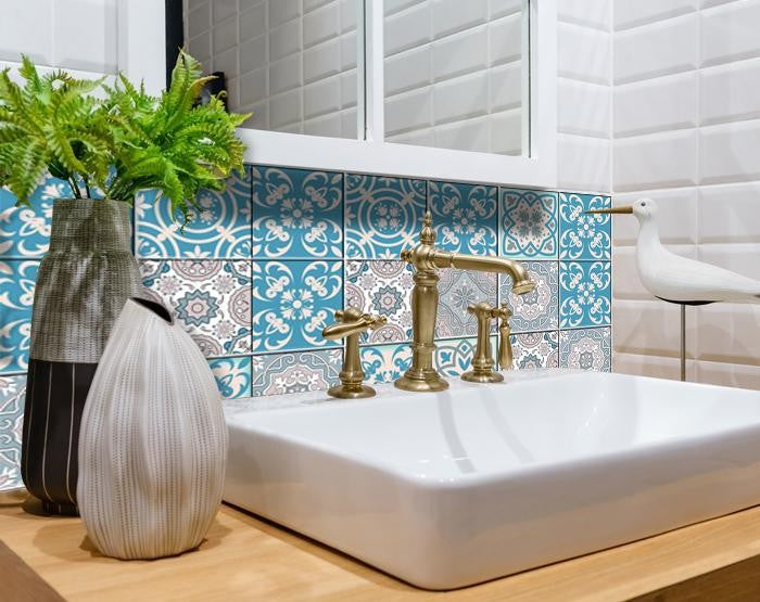 The possibilities are endless with these 8" x 8" Sky Blue Mosaic Peel and Stick Removable Tile stickers. These fabulous peel and stick tiles will add sophisticated flair and design to your kitchen backsplash, fireplace mantel, stair treads, half wall, bathroom or nook. These 8" square tile stickers are an easy, no mess solution to complete a personalized and colorful room makeover. Easy to apply on any clean dry flat surface, and easy to remove. Multi use and multi-room appeal make this design option is perfect for renters, landlords, college students and homeowners alike. Peel and stick tile decals make it easy to turn your space into a home. Removable without damage to surfaces. One kit contains 24 stickers. Kit includes multiple design styles and colorations to be displayed in any arrangement you choose.