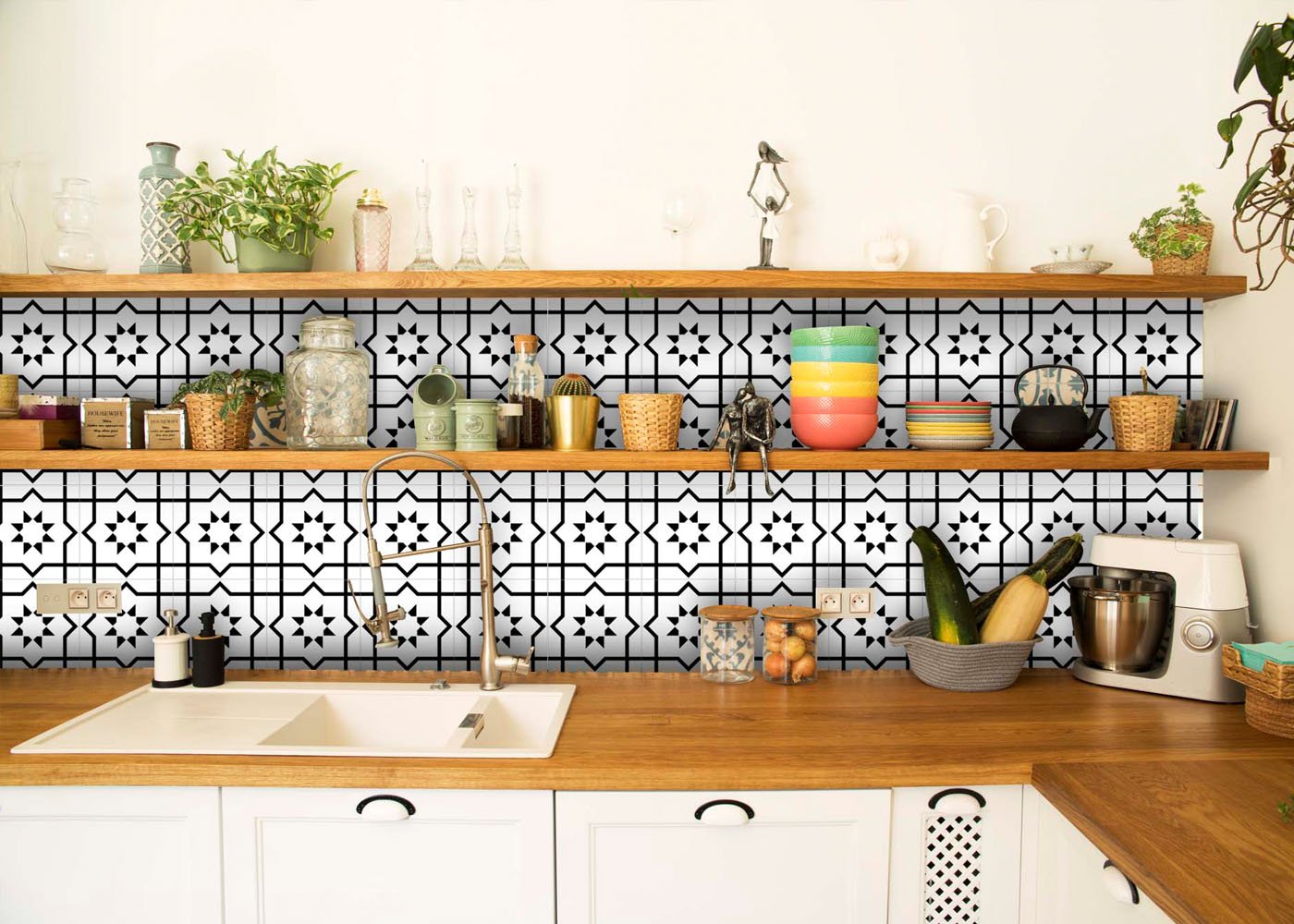 8" X 8" White And Black Sun Peel And Stick Removable Tiles
