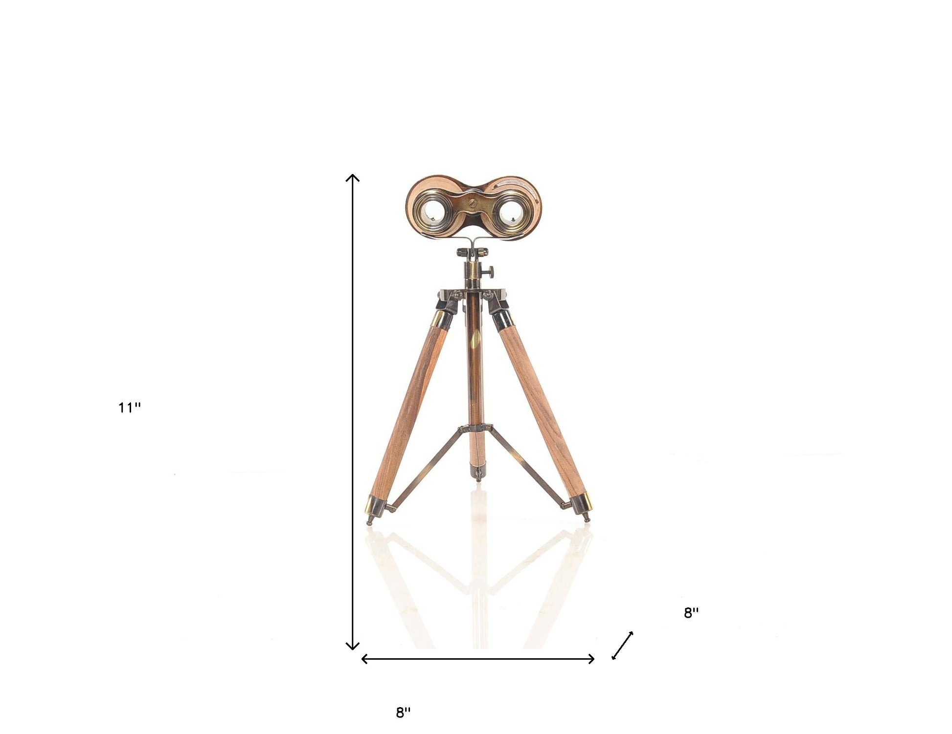 8" X 8" X 11" Wood Brass Binocular On Stand