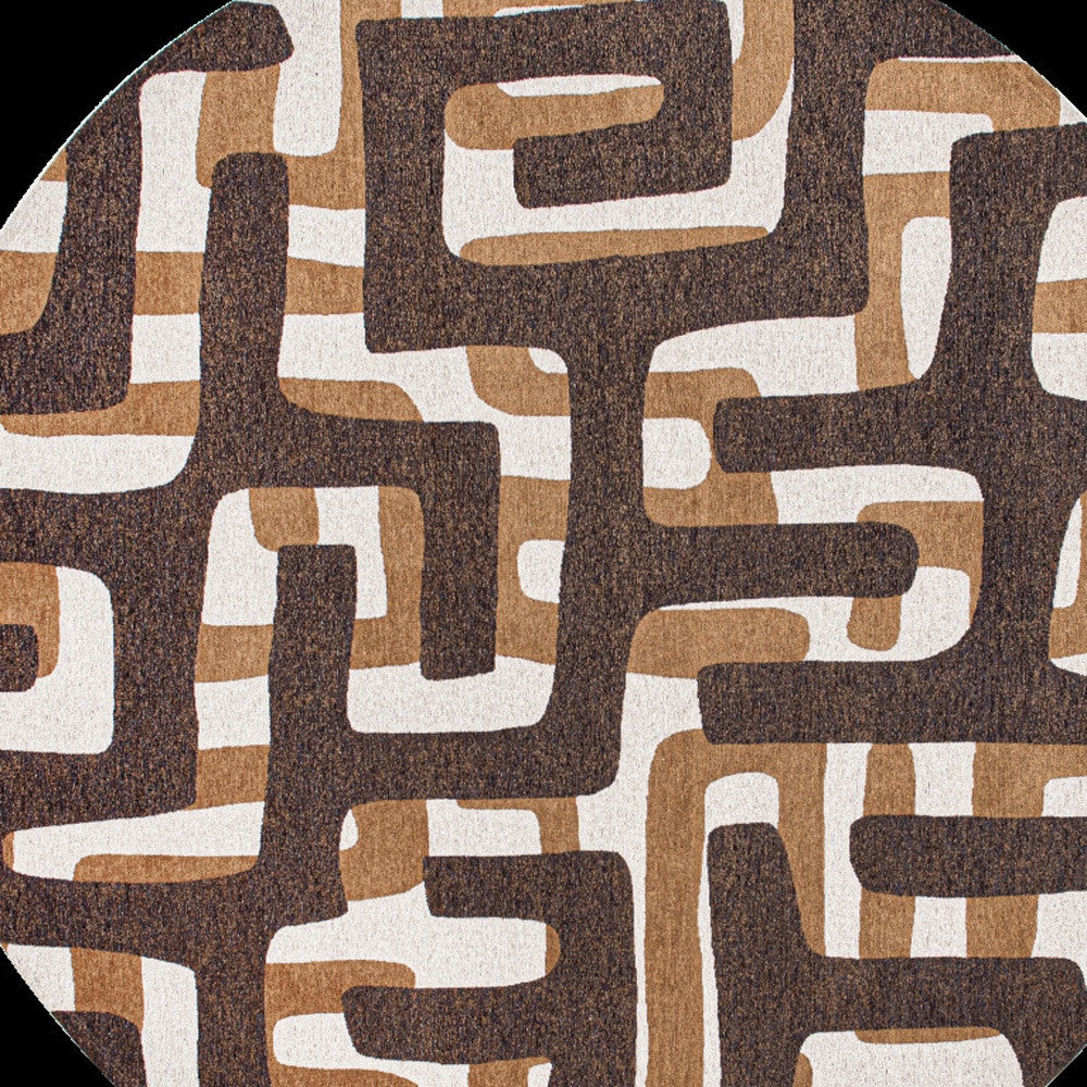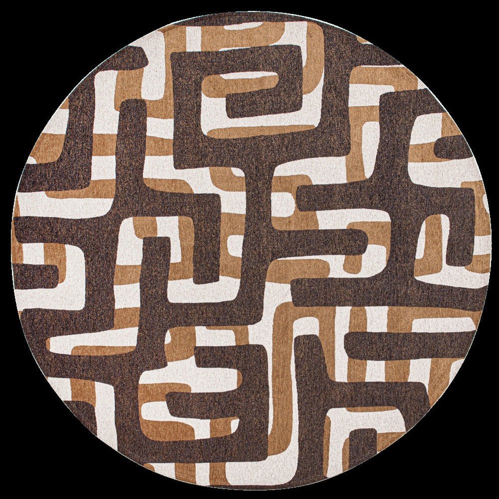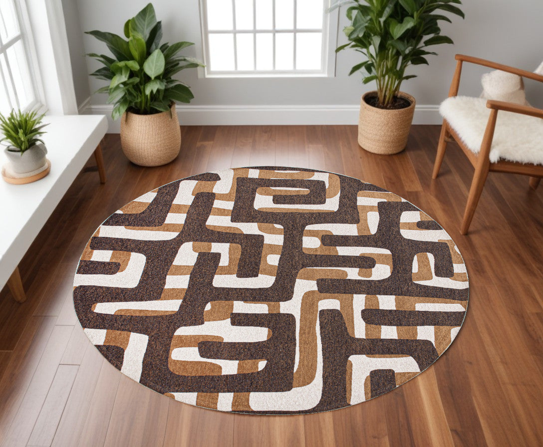 8' Yellow and Brown Round Abstract Non Skid Area Rug