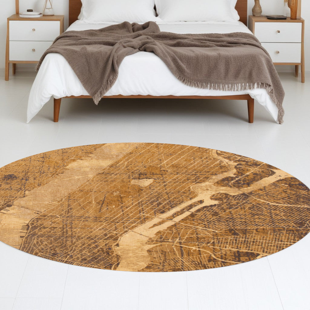Add some artistry to your room with this 8-foot yellow round abstract non skid area rug. This geometric round shaped rug features a abstract pattern in yellow that combines a good looking print with a unique and updated shape. The mix of shape, color, and design gives this rug refreshing visual interest. Area rugs help to give warmth and sense of home to your space. 84-inch H x 84-inch W x 0.12-inch D