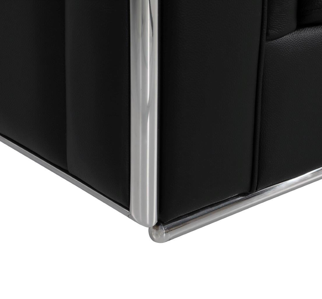 An interior designer's dream, this buttery soft high grade leather 89-inch black and silver italian leather sofa will bring just the right touch to your space. The premium leather used makes your lounging luxuriously comfortable and adds an elegant appeal to your space. Solid colors give you lots of decorative options and are easy to work into your decor scheme. Sinuous springs construction gives this piece strong support and makes it comfortable to sit even for long periods of time. Removable back cushions make this sofa easy to manage. Square arms offer a comfy place to rest. Silver stainless steel legs effortlessly elevate the room and add a touch of contemporary design. A great showpiece for your room, this sofa is a must have. 40-inch H x 89-inch W x 34-inch D