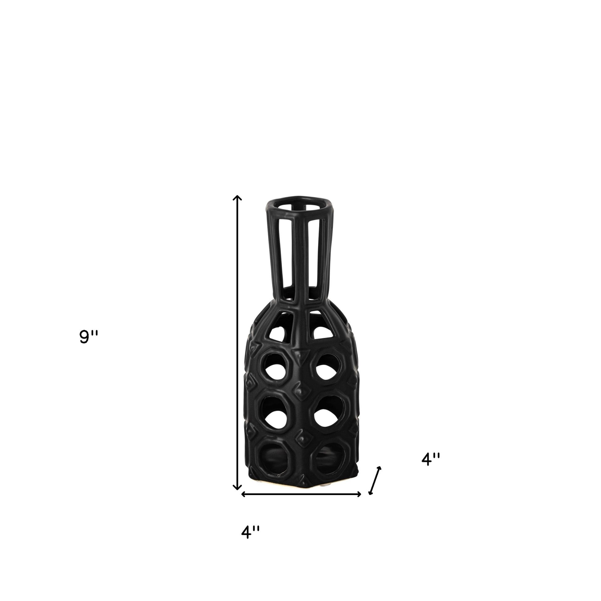 9" Black Pierced Pattern Ceramic Vase