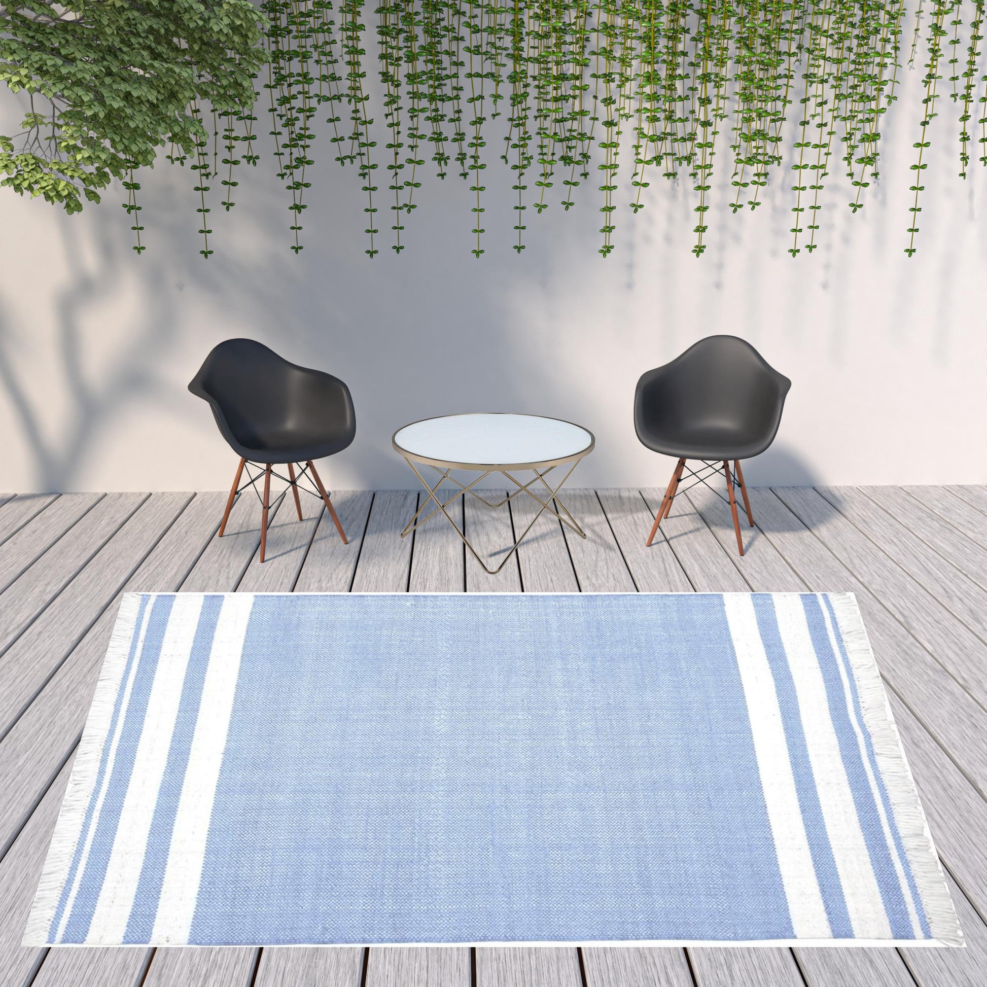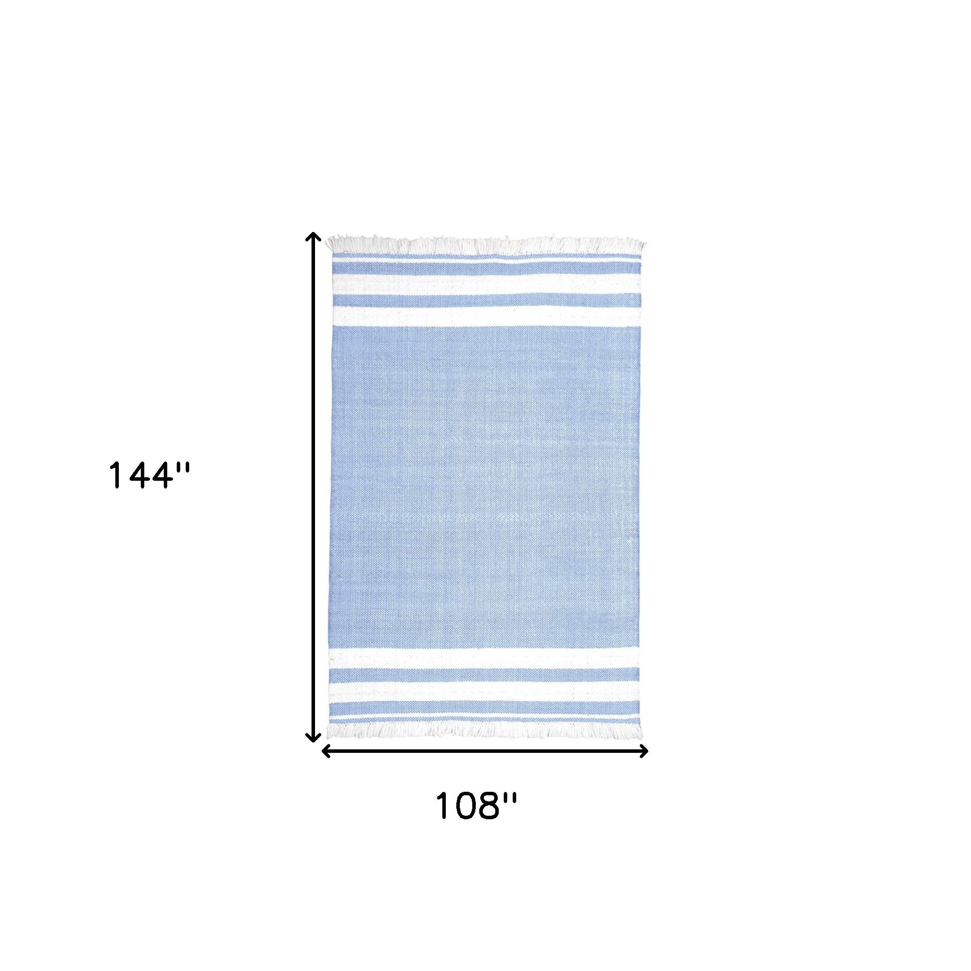 9' x 12' Blue Striped Handmade Stain Resistant Non Skid Indoor Outdoor Area Rug