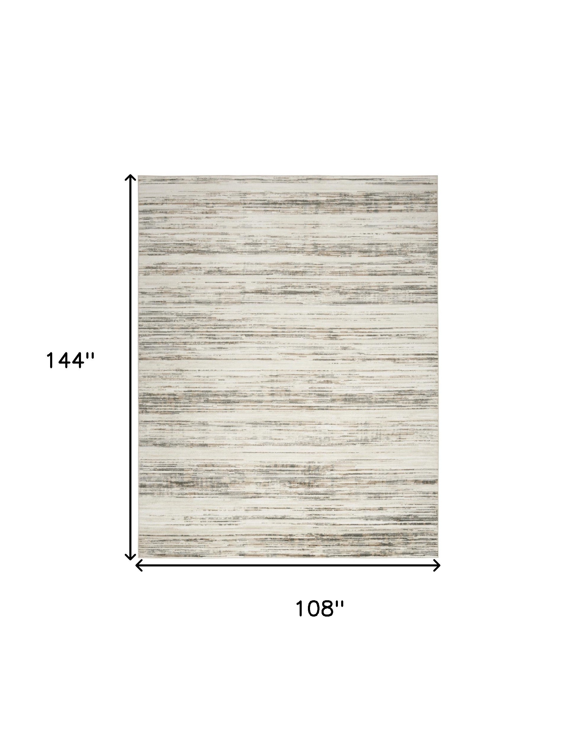 Add some artistry to your room with this 9-foot x 12-foot cream abstract distressed area rug. This rectangle shaped rug features a abstract design in cream to give it visual interest. A classic shape marries with good looking design for your space the coloring of this rug adds a delightfully neutral tone to your home and will easily match with most any decor. Place this area rug against a hardwood or tile floor and it will enliven your living space with style and sophistication. 108-inch H x 144-inch W x 0.35-inch D
