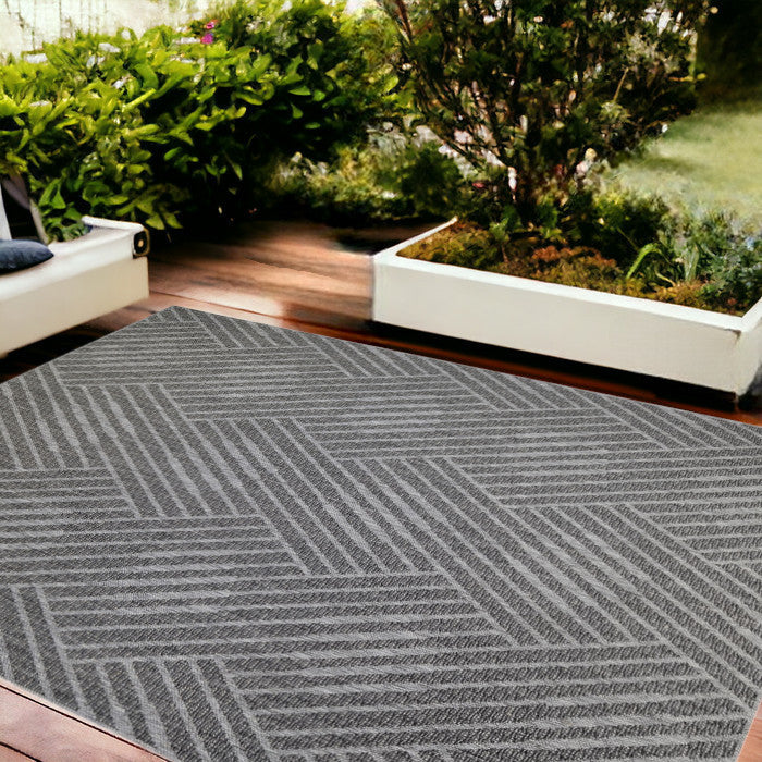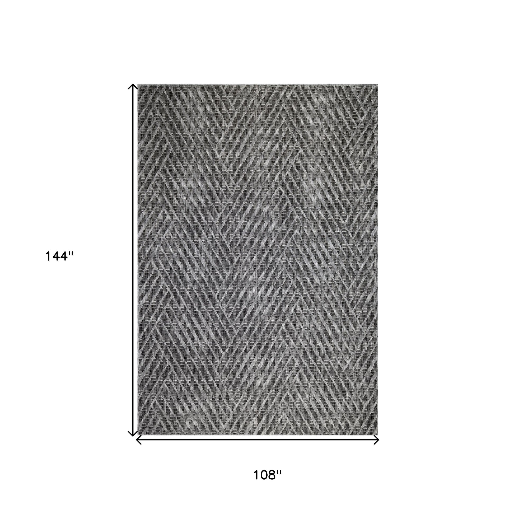 9' x 12' Gray and Blue Geometric Stain Resistant Indoor Outdoor Area Rug