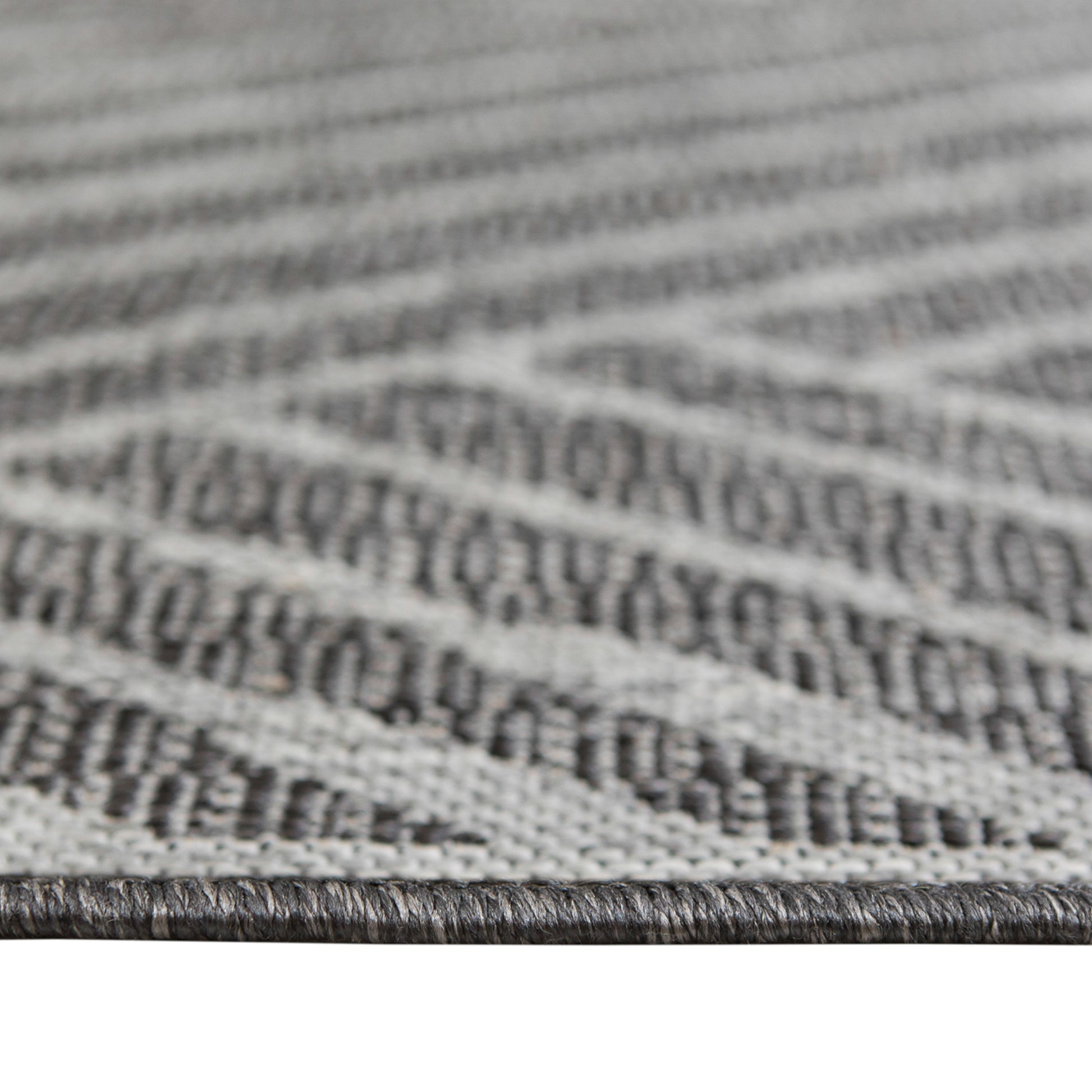 Add great coloration and comfortable texture to your space with this 9-foot x 12-foot gray and blue geometric stain resistant indoor outdoor area rug. This rectangle shaped rug features a geometric design in gray and blue to give it visual interest. A classic shape marries with good looking design for your space ideal for spaces with kids and pets, this rug is stain resistant to help repel stains and spilled liquids. Area rugs help to give warmth and sense of home to your space. 108-inch H x 144-inch W x 0.02-inch D