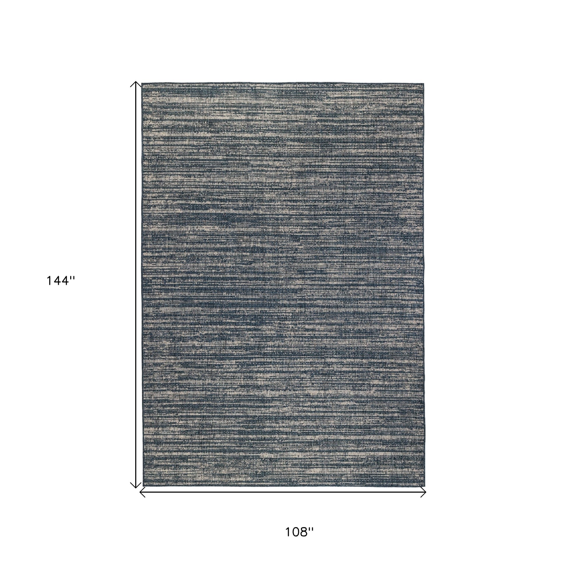 9' x 12' Gray and Blue Striped Stain Resistant Indoor Outdoor Area Rug