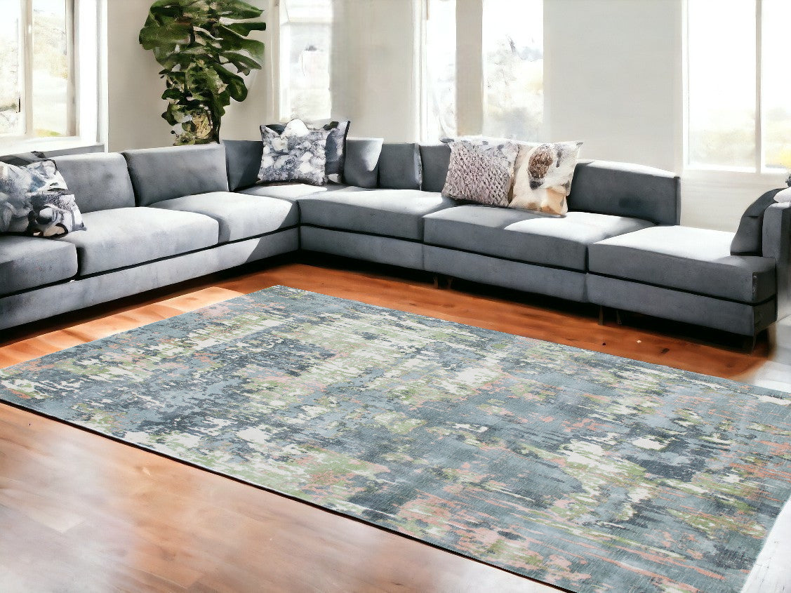 9' x 12' Gray and Yellow Abstract Hand Loomed Area Rug