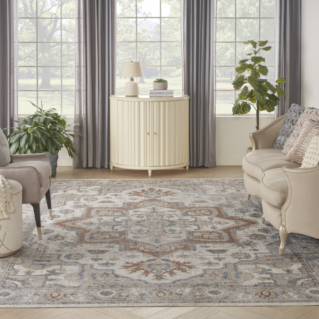 This 9' x 12' gray oriental power loom area rug, is a great way to add warmth to a room. This rectangle shaped rug features a oriental design in gray to give it visual interest. A classic shape marries with good looking design for your space The coloring of this rug adds a delightfully neutral tone to your home and will easily match with most any decor. This superior Turkish rug represents the highest quality and is built to last. Area Rugs help to give warmth and sense of home to your space. .25" H x 108.00" W x 144.00" D