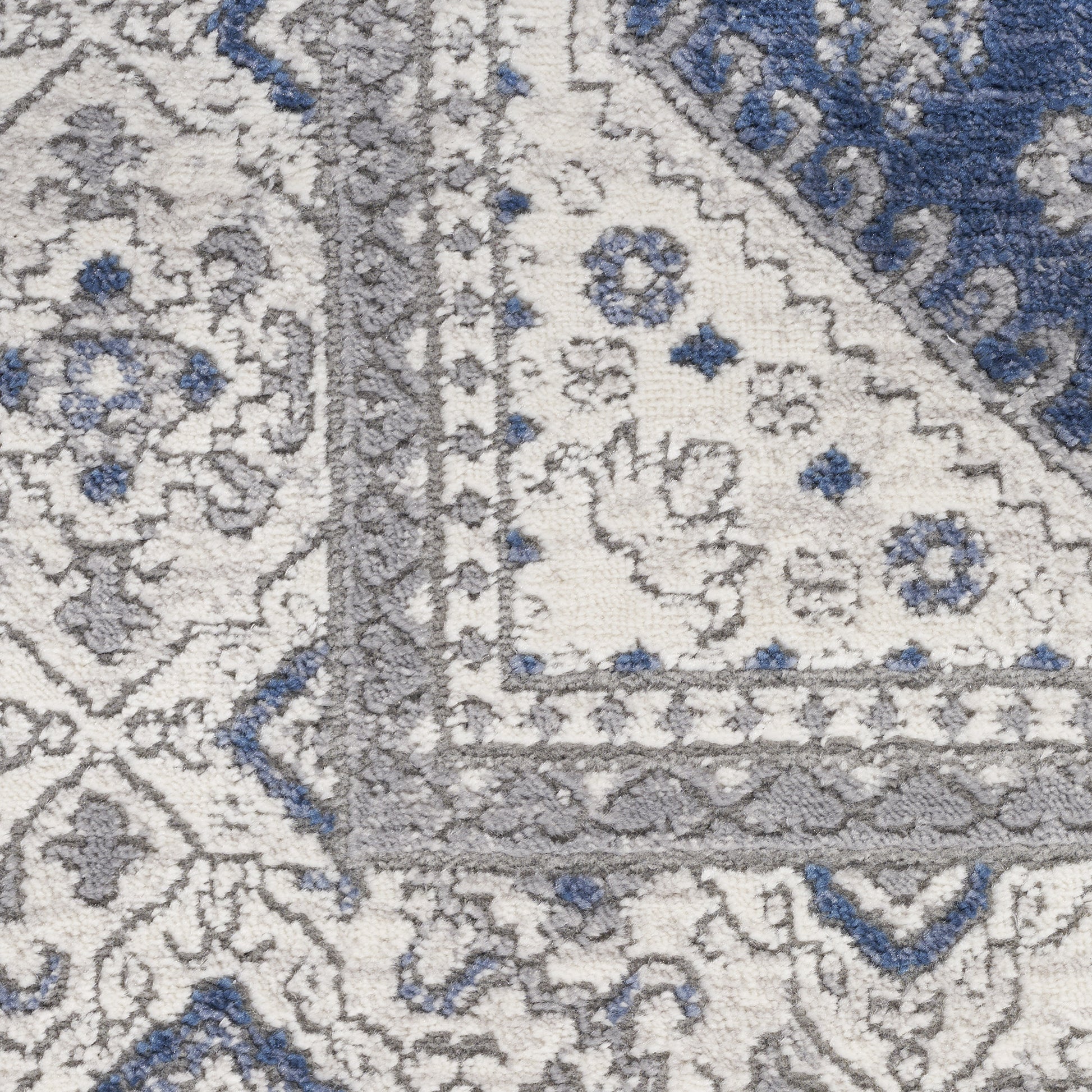 9' x 12' Ivory Blue and Gray Oriental Power Loom Area Rug