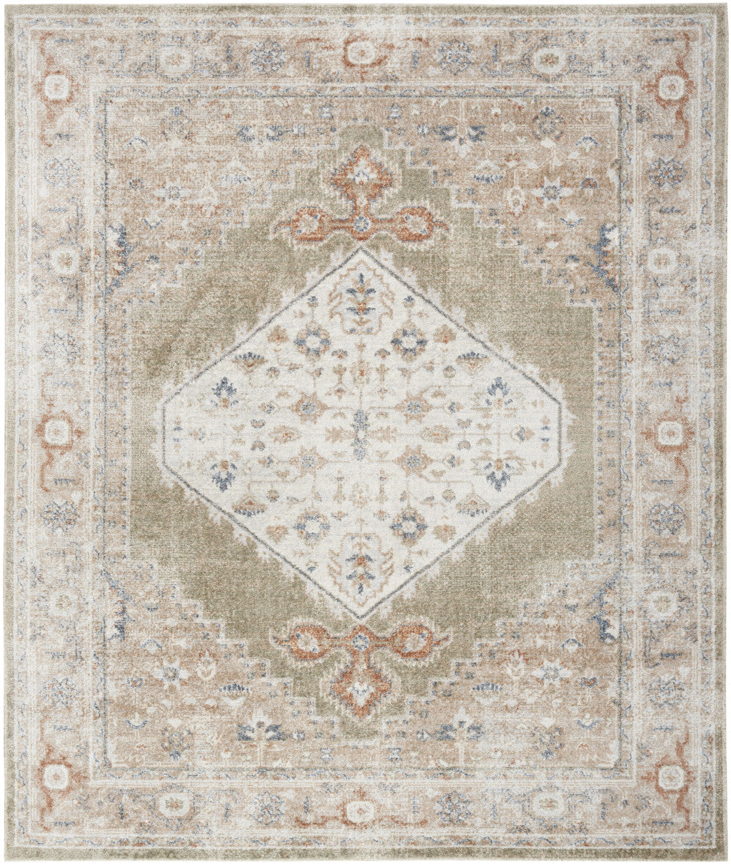 Add great coloration and comfortable texture to your space with this 9-foot x 12-foot khaki oriental power loom distressed washable area rug. This rectangle shaped rug features a oriental design in khaki to give it visual interest. A classic shape marries with good looking design for your space Place this area rug against a hardwood or tile floor and it will enliven your living space with style and sophistication. .25-inch H x 108.00-inch W x 144.00-inch D