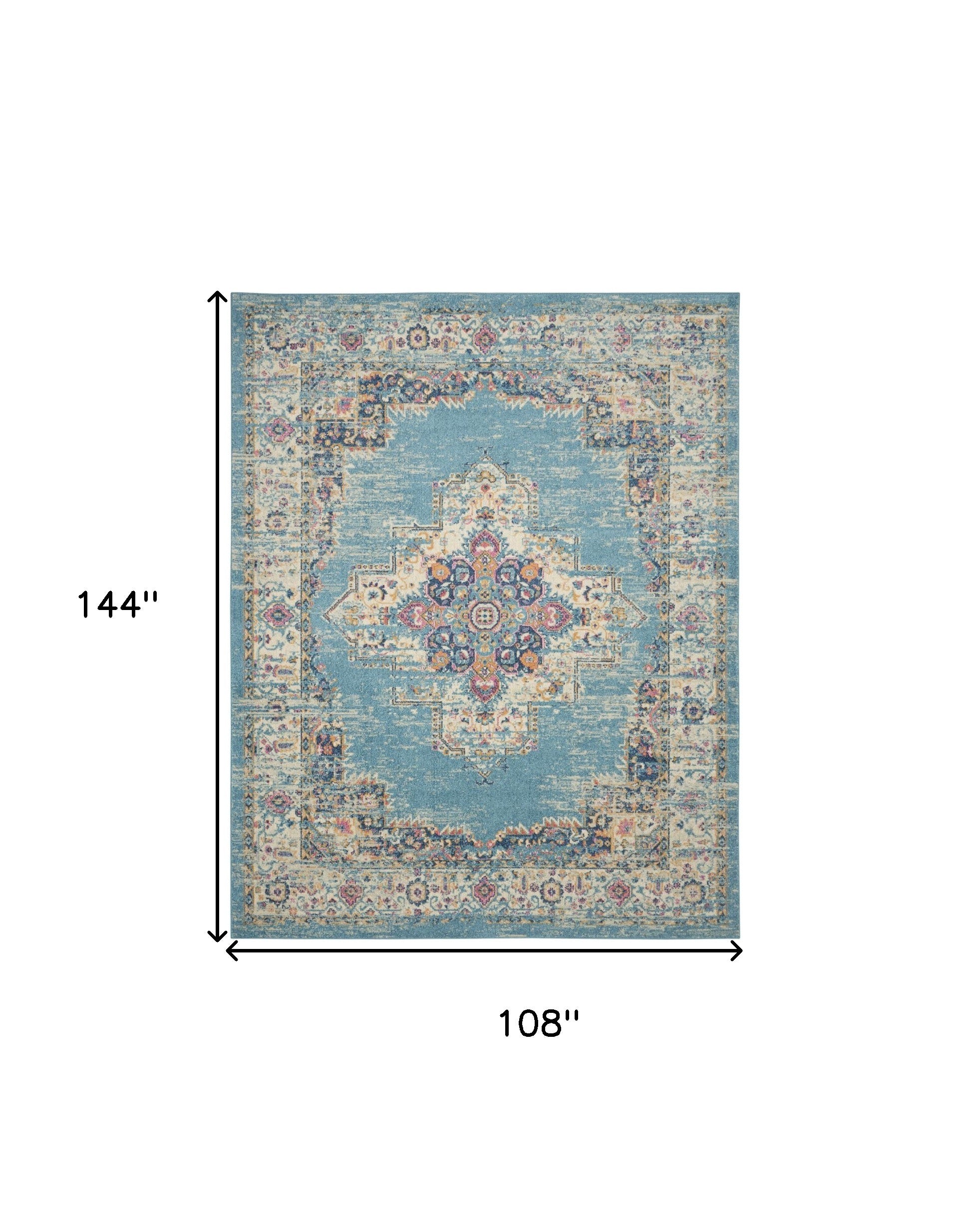 9' x 12' Light Blue Floral Power Loom Area Rug