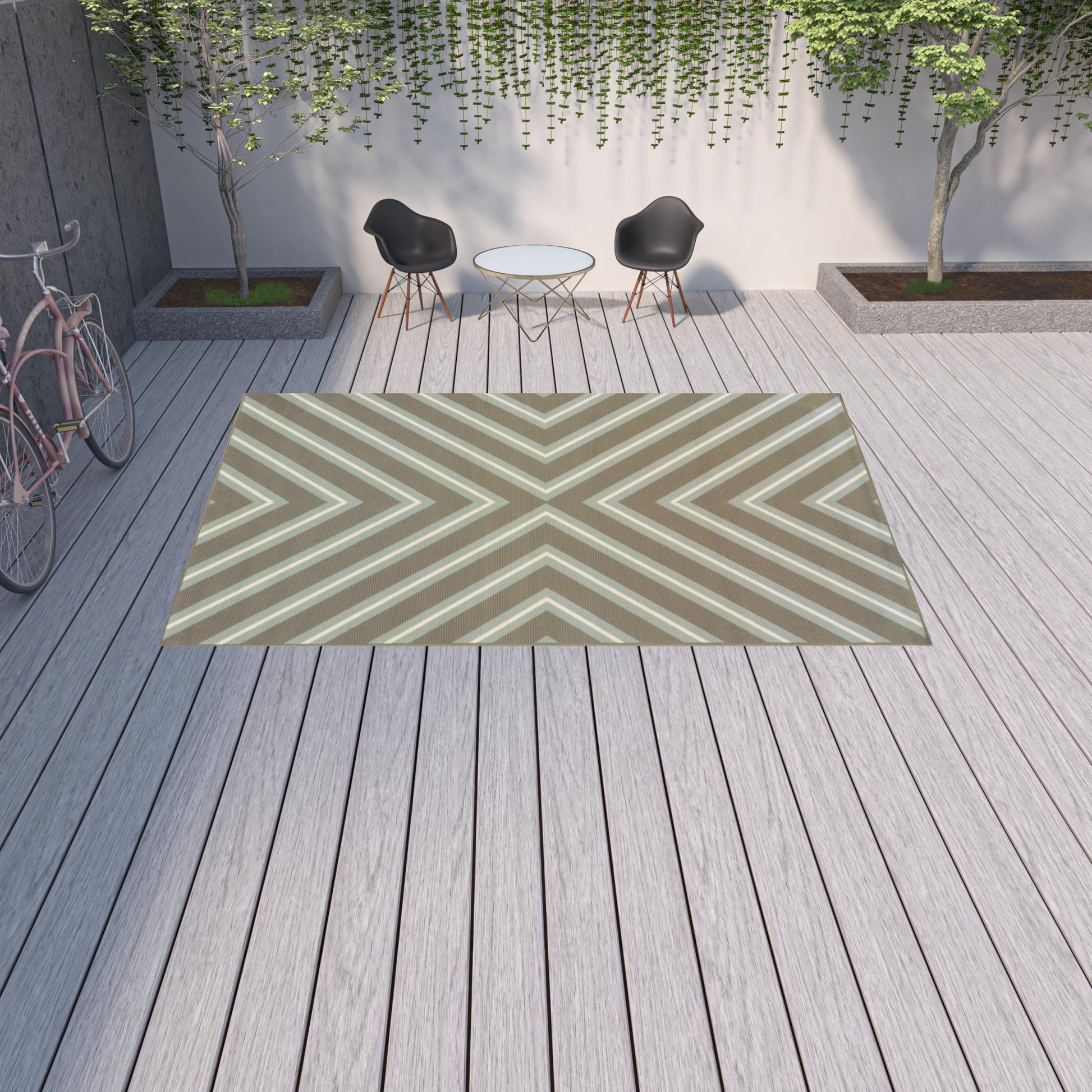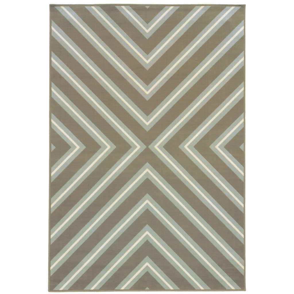 9' X 13' Blue and Gray Geometric Stain Resistant Indoor Outdoor Area Rug