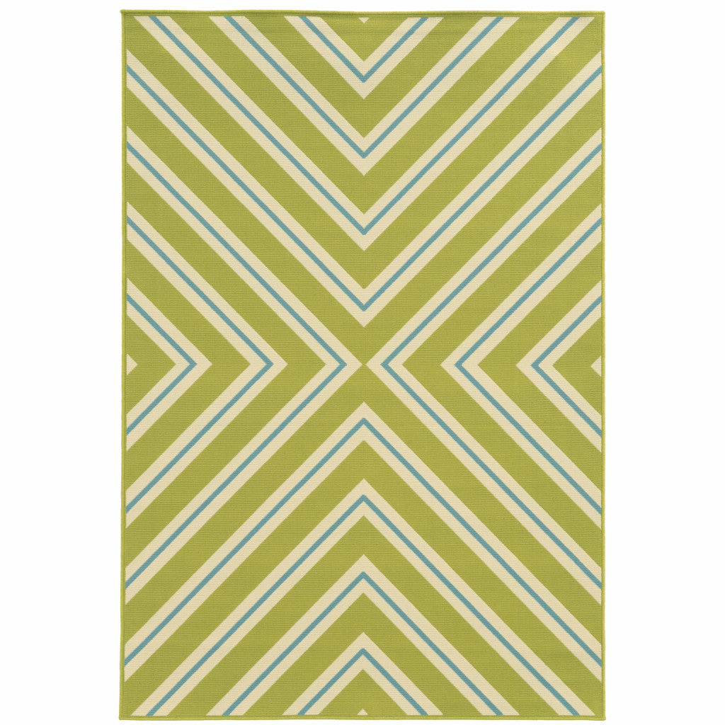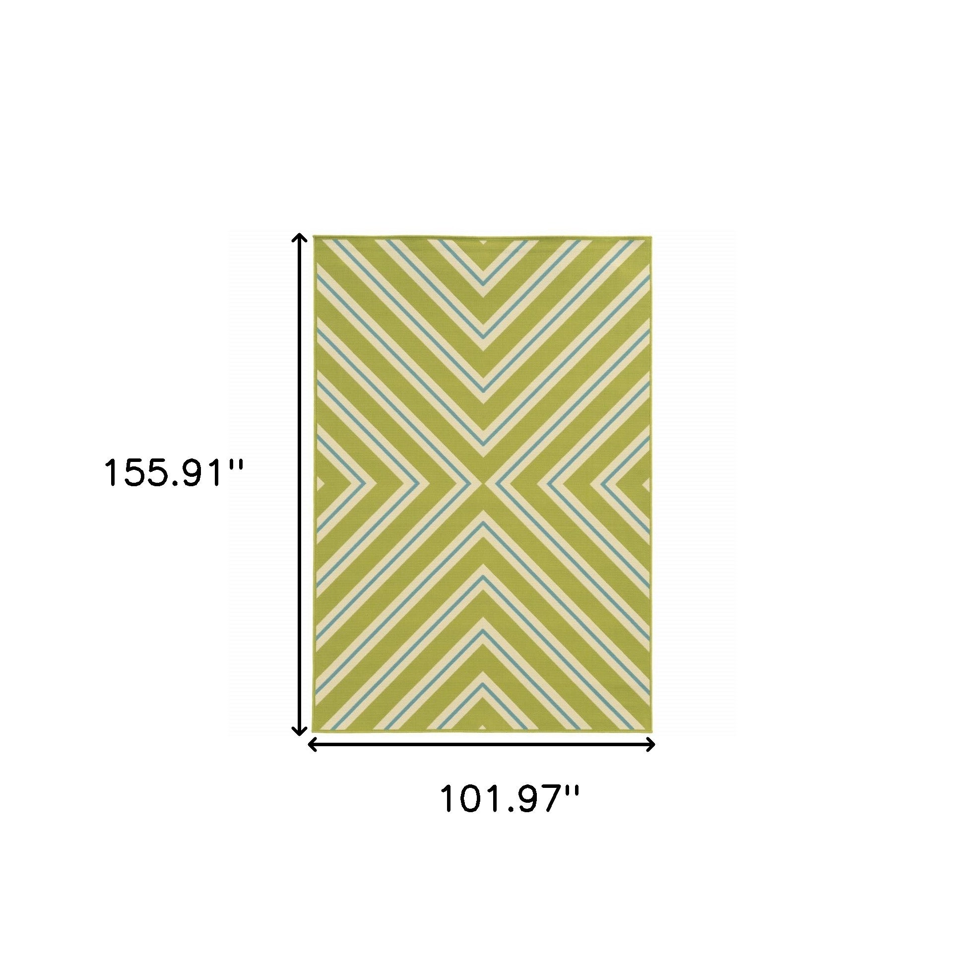 9' X 13' Blue and Green Geometric Stain Resistant Indoor Outdoor Area Rug