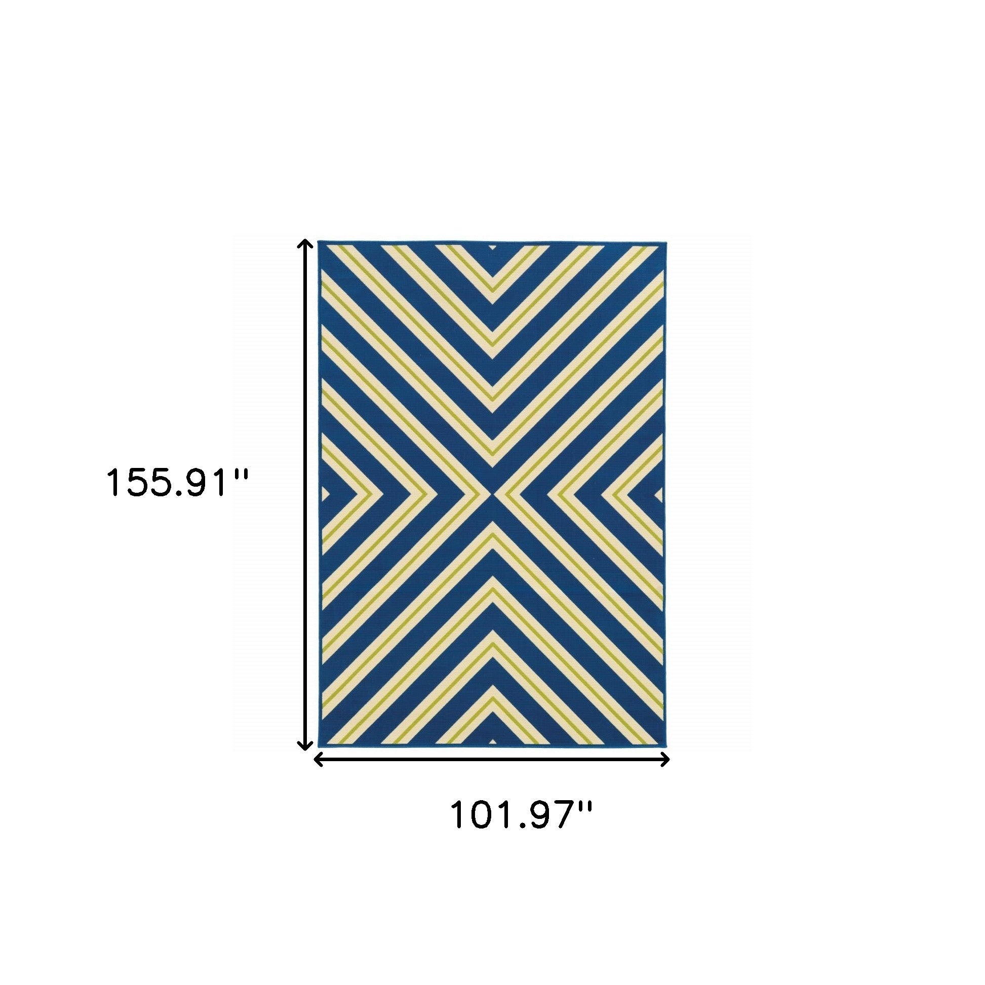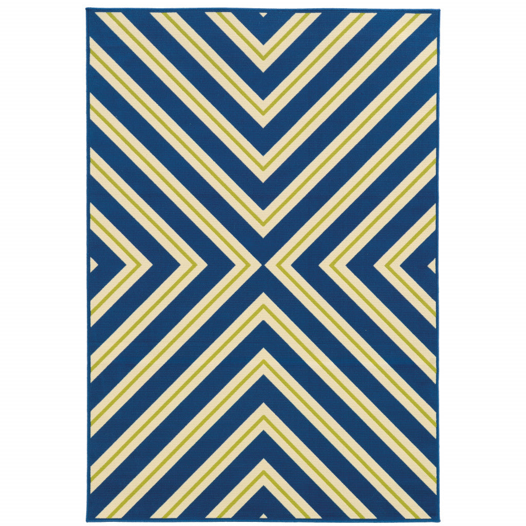 9' X 13' Blue and Ivory Geometric Stain Resistant Indoor Outdoor Area Rug