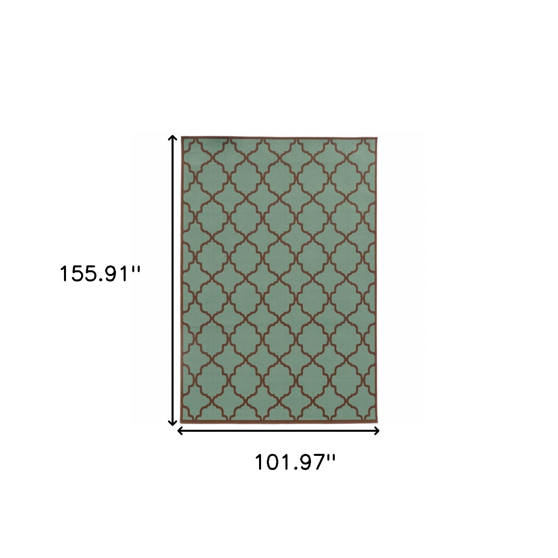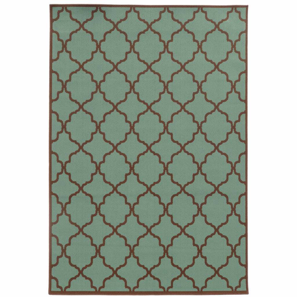 9' X 13' Blue Geometric Stain Resistant Indoor Outdoor Area Rug
