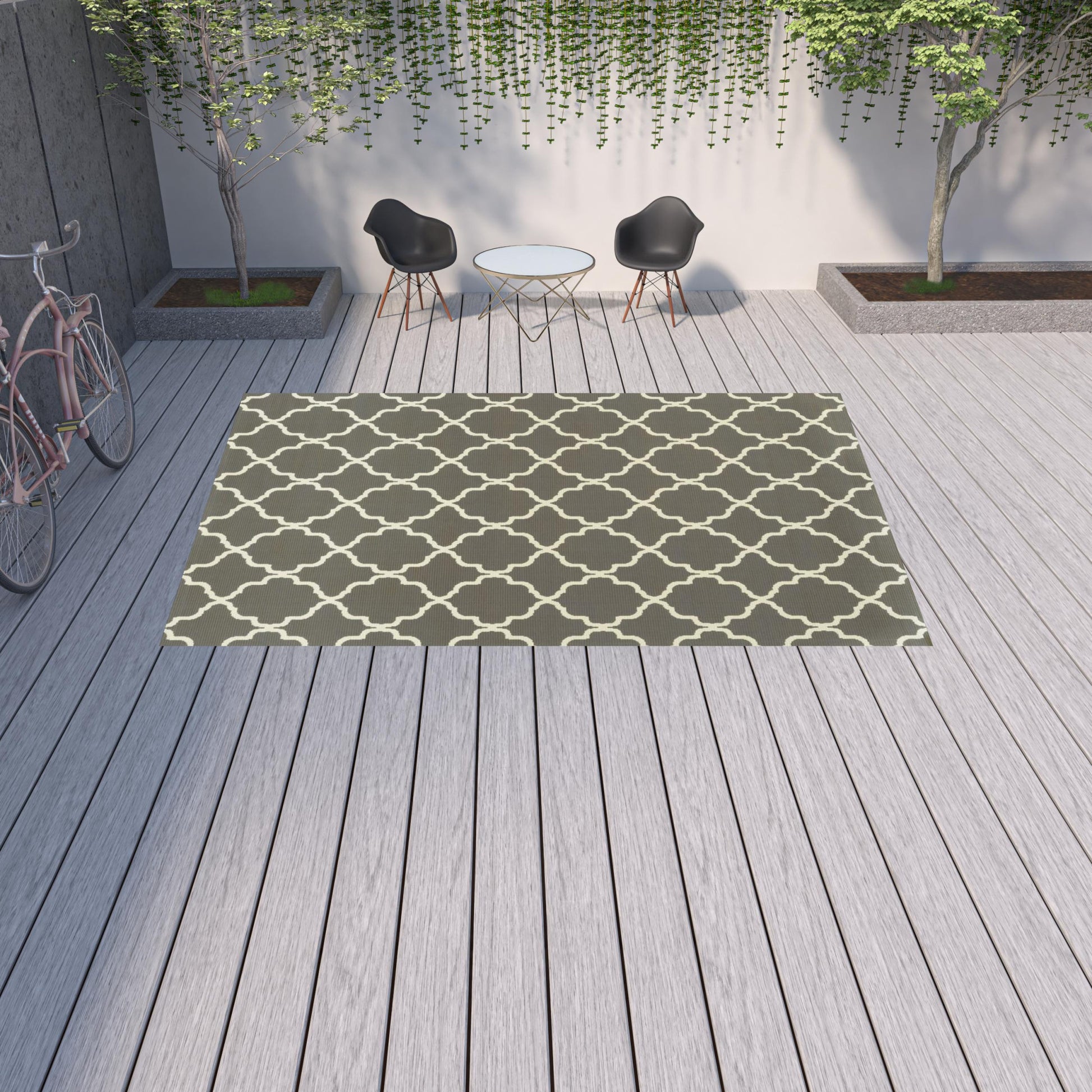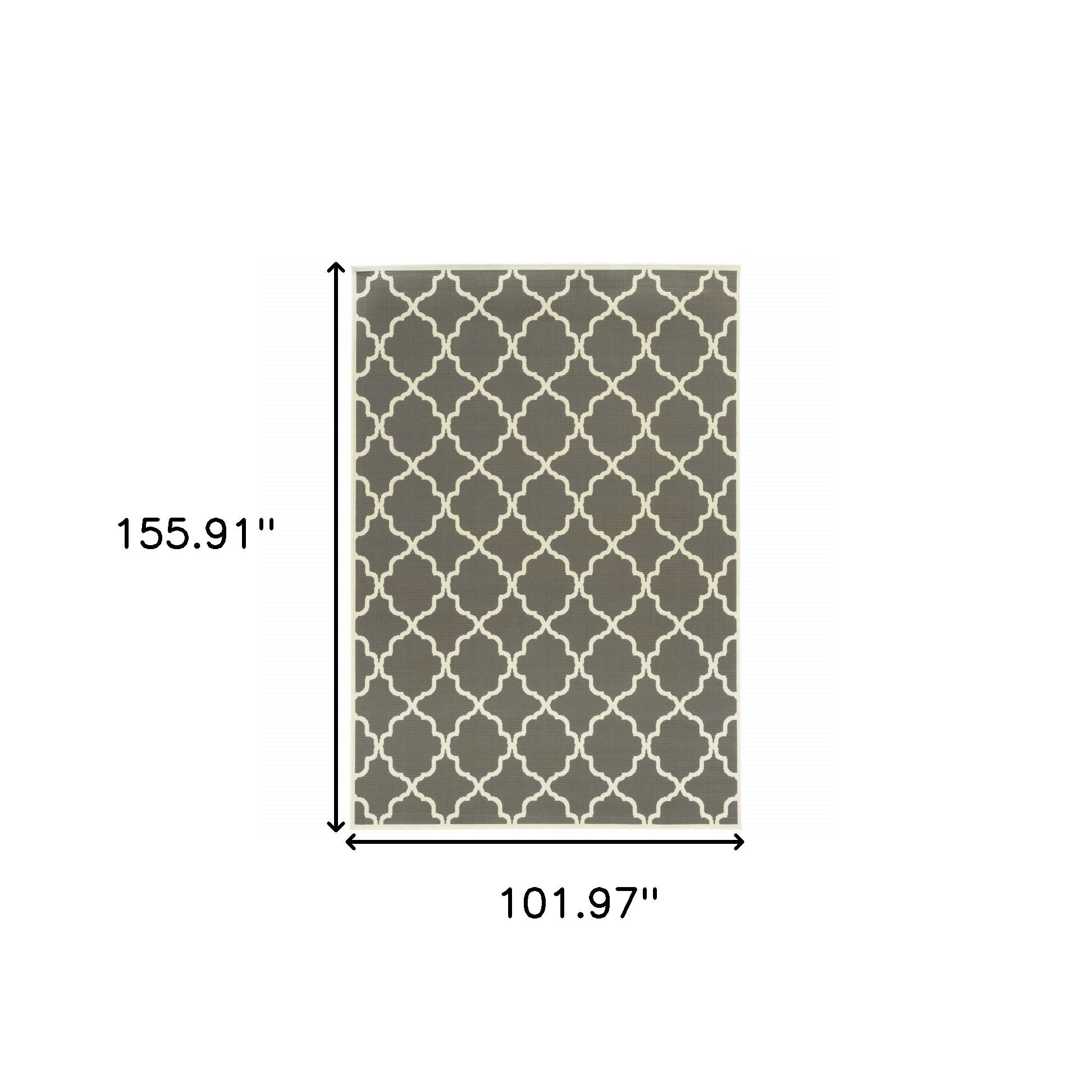 9' X 13' Charcoal Geometric Stain Resistant Indoor Outdoor Area Rug