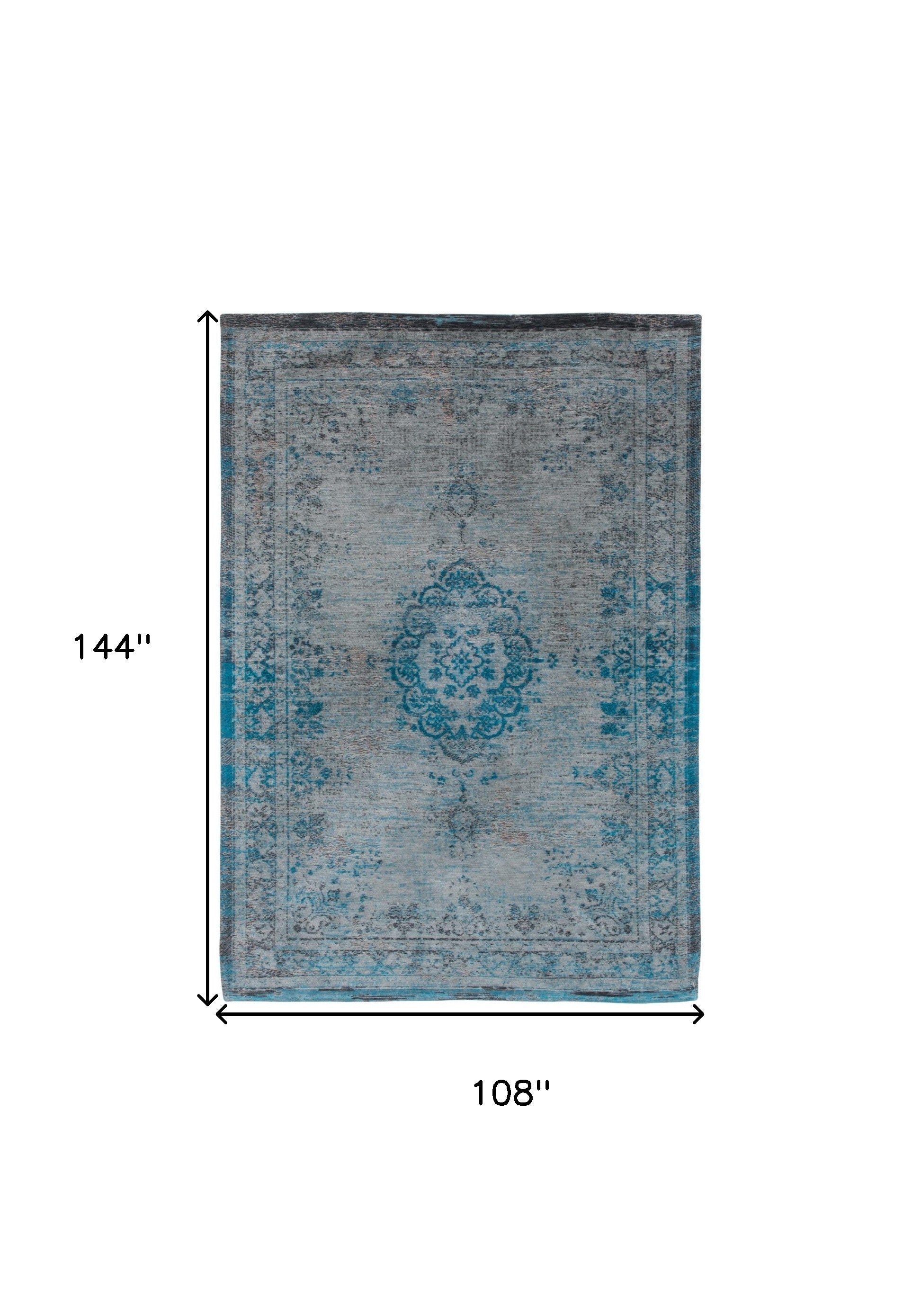 9' X 13' Gray and Green Medallion Non Skid Area Rug