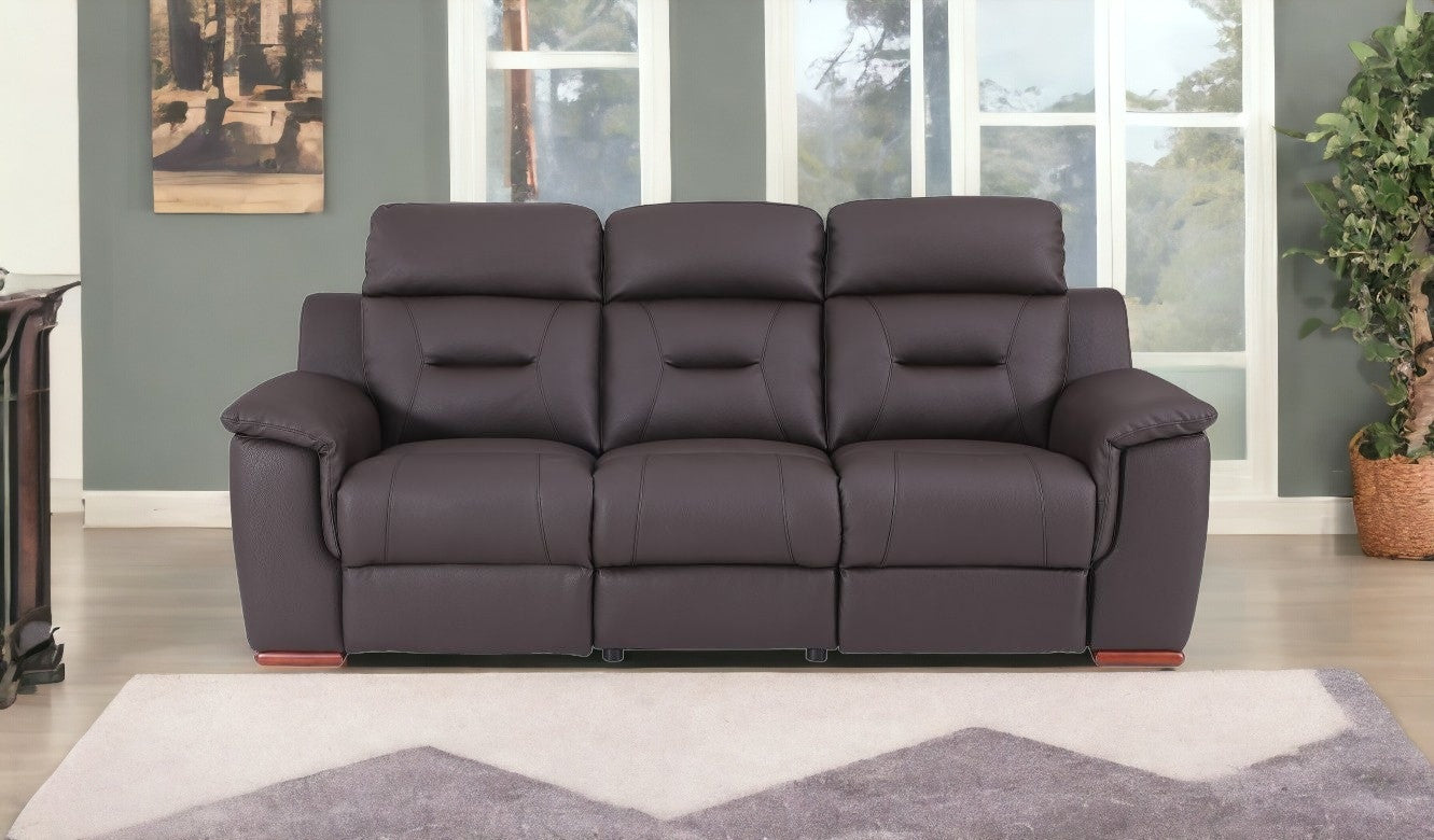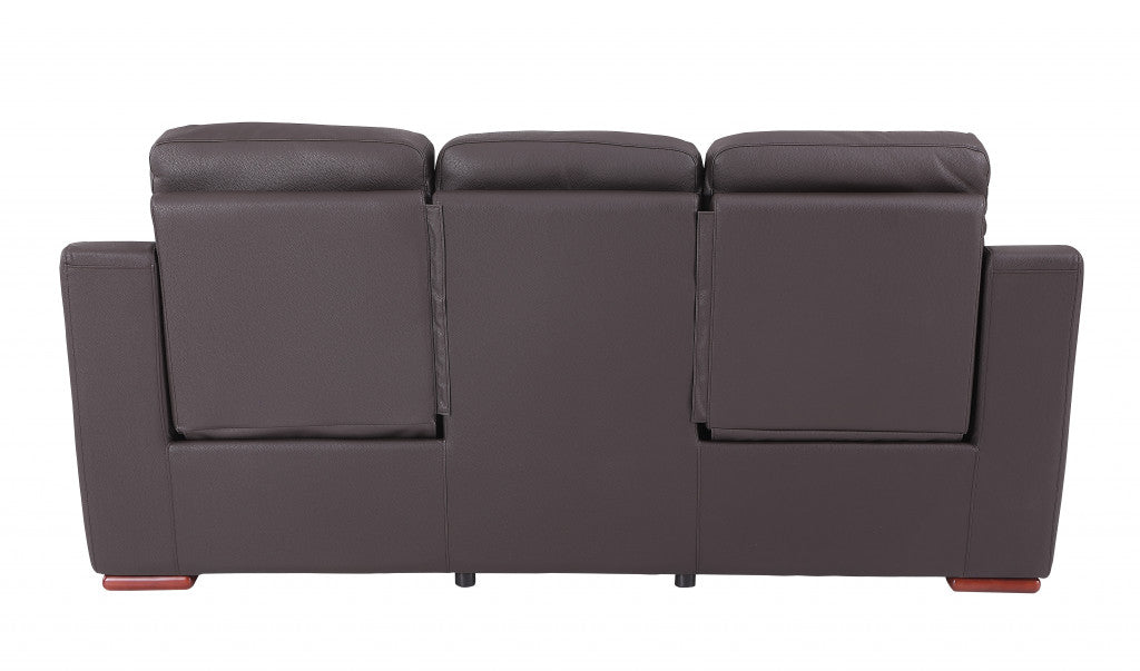 This 90-inch brown faux leather sofa is made from sturdy and resilient faux leather that will look and feel like leather. Solid colors give you lots of decorative options and are easy to work into your decor scheme. Pillow top arms offer a comfy place to rest. Brown stainless steel legs effortlessly elevate the room and add a touch of contemporary design. Built to last, this sofa will be a great centerpiece for your room. 41-inch H x 90-inch W x 41-inch D