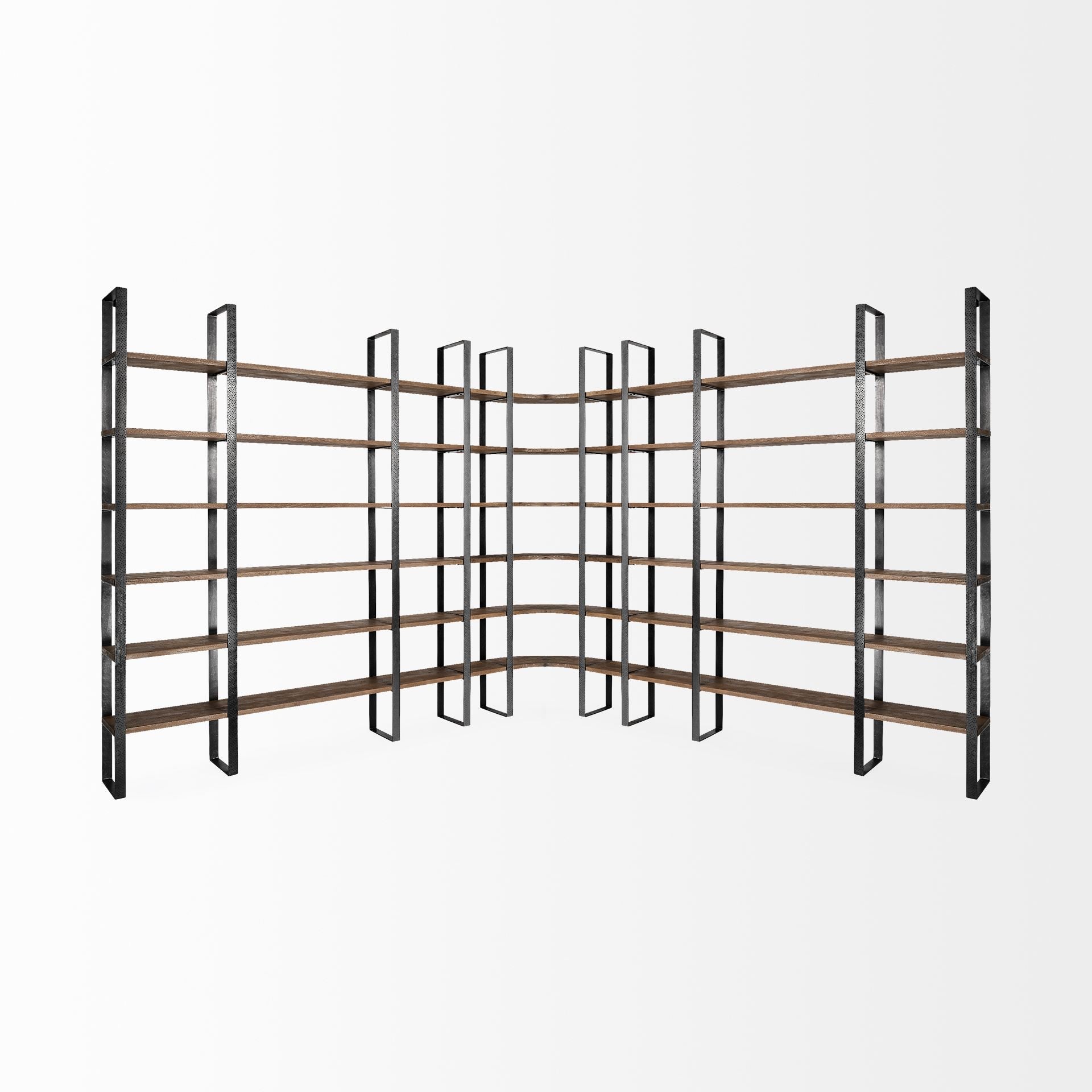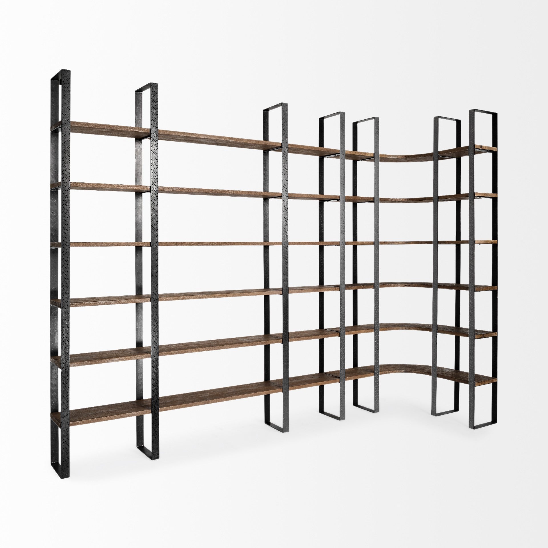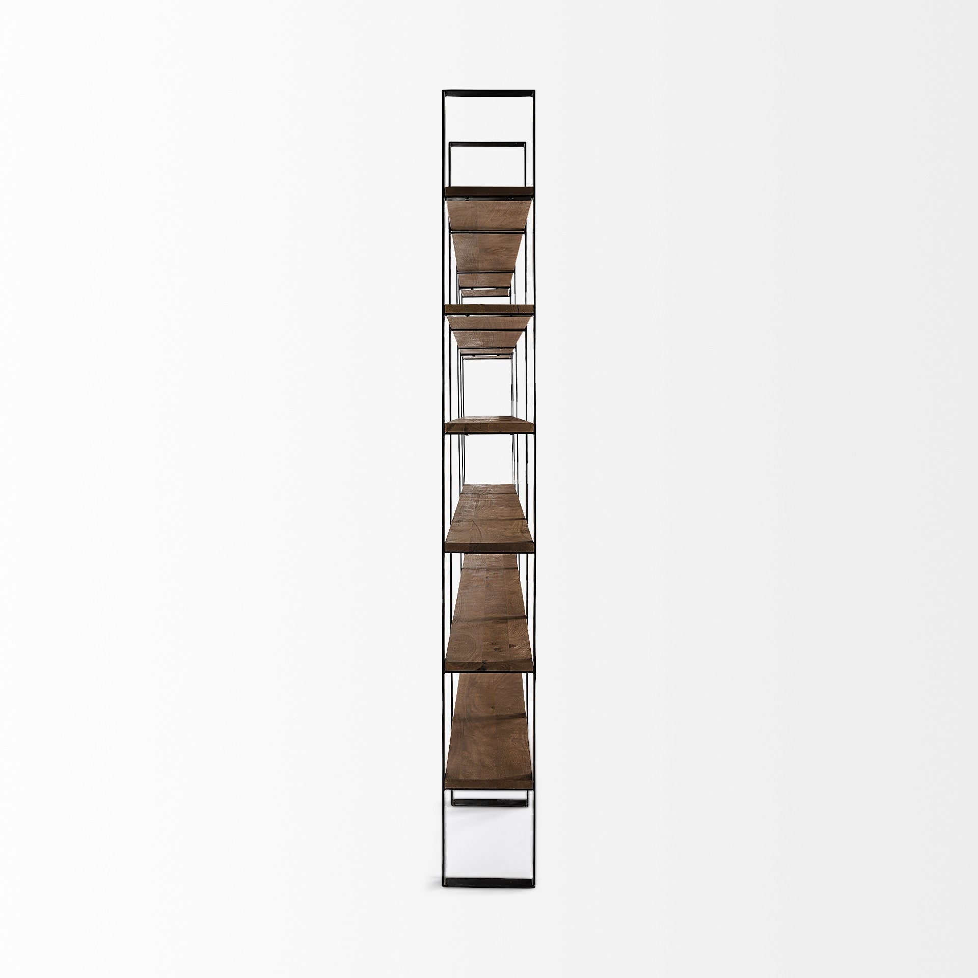 90" Brown Iron and Solid Wood Six Tier Bookcase