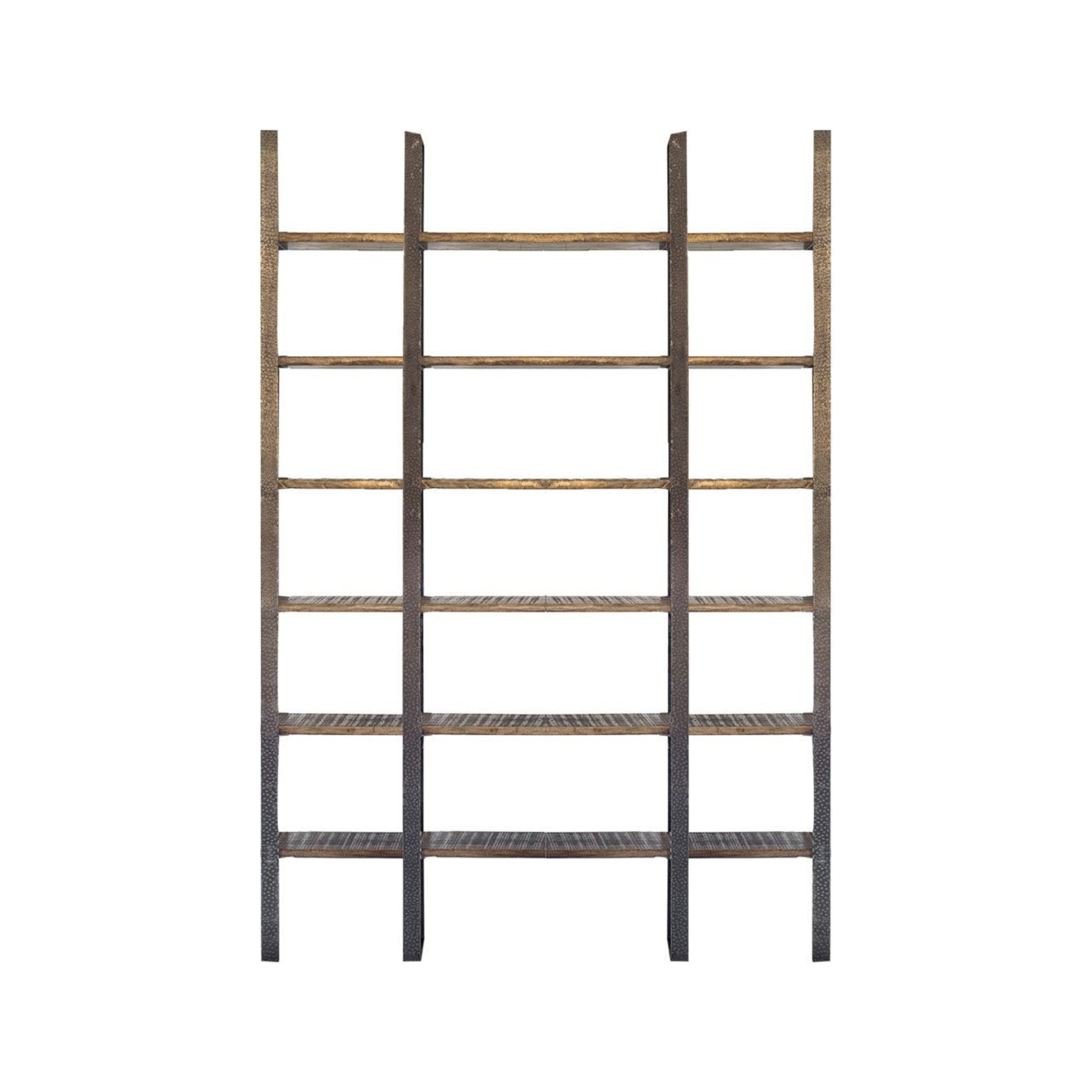 90" Brown Wood and Iron Six Tier Shelving Unit