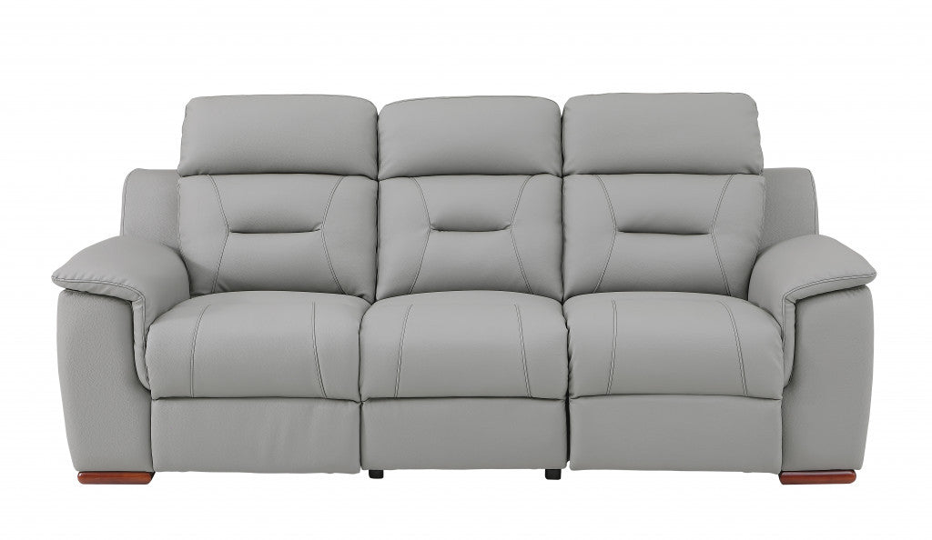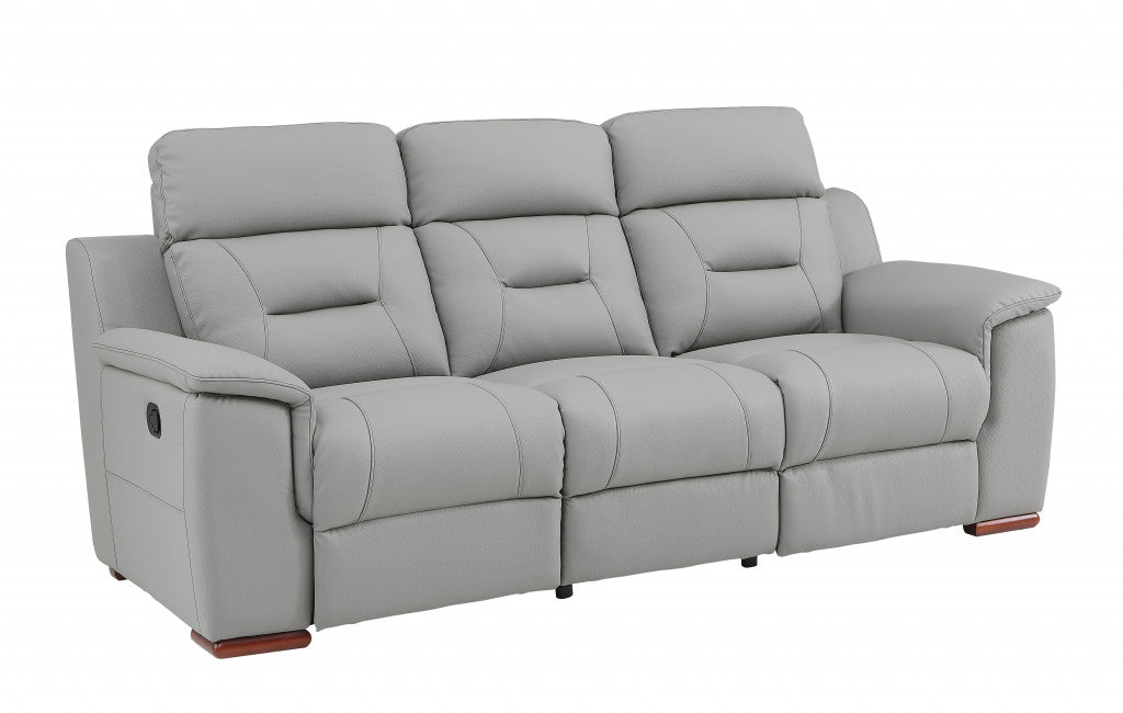 90" Gray And Brown Faux Leather Sofa