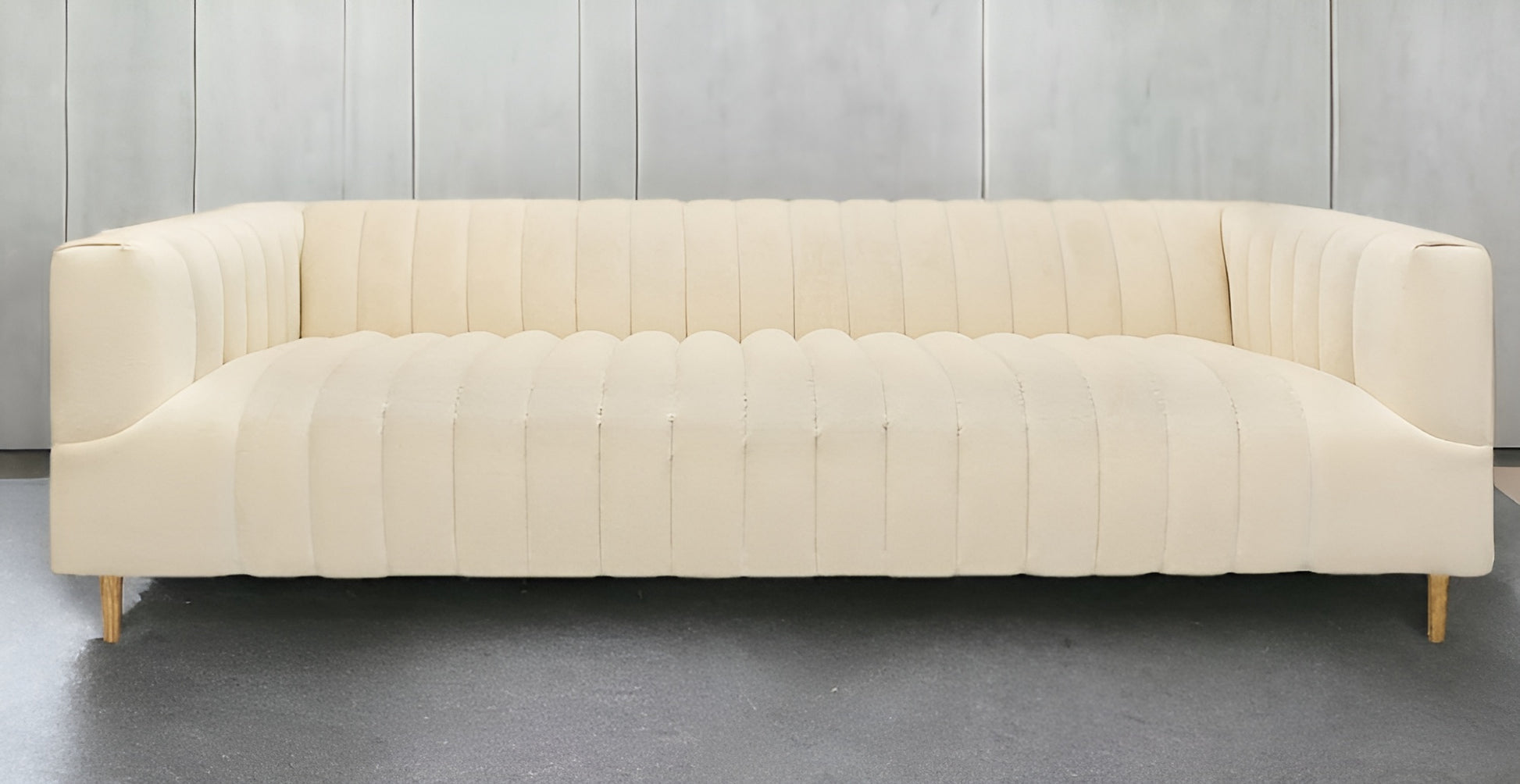 90" Ivory Channeled Velvet and Gold Sofa